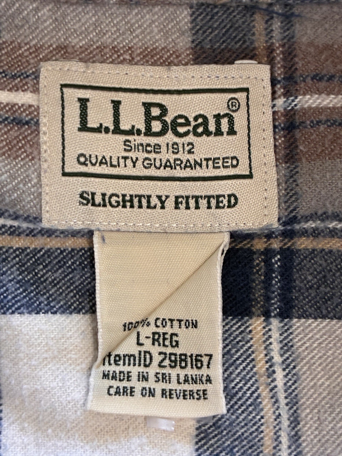 как выглядит L.L. Bean Plaid Flannel Shirt Cotton Long Sleeve Blue Slightly Fitted Sz L фото