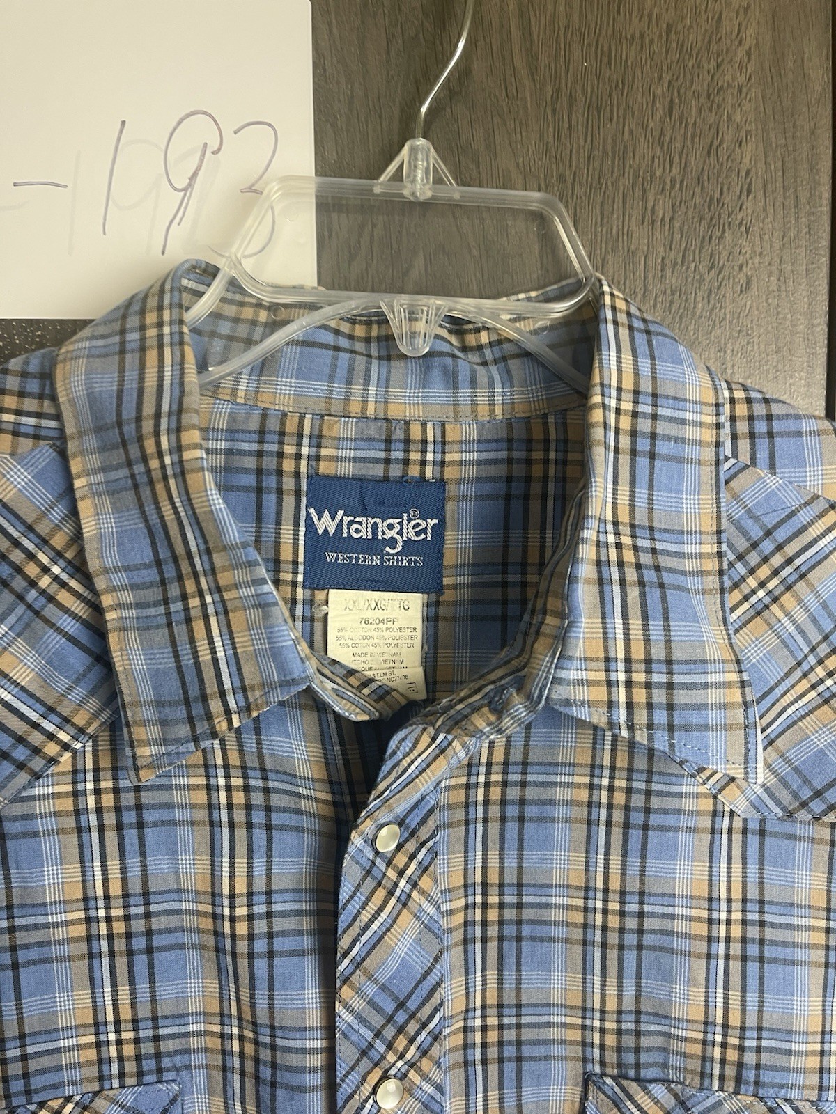 Vintage Wrangler Plaid Western Shirt Pearl Snap Short Sleeve Cowboy Mens XXL