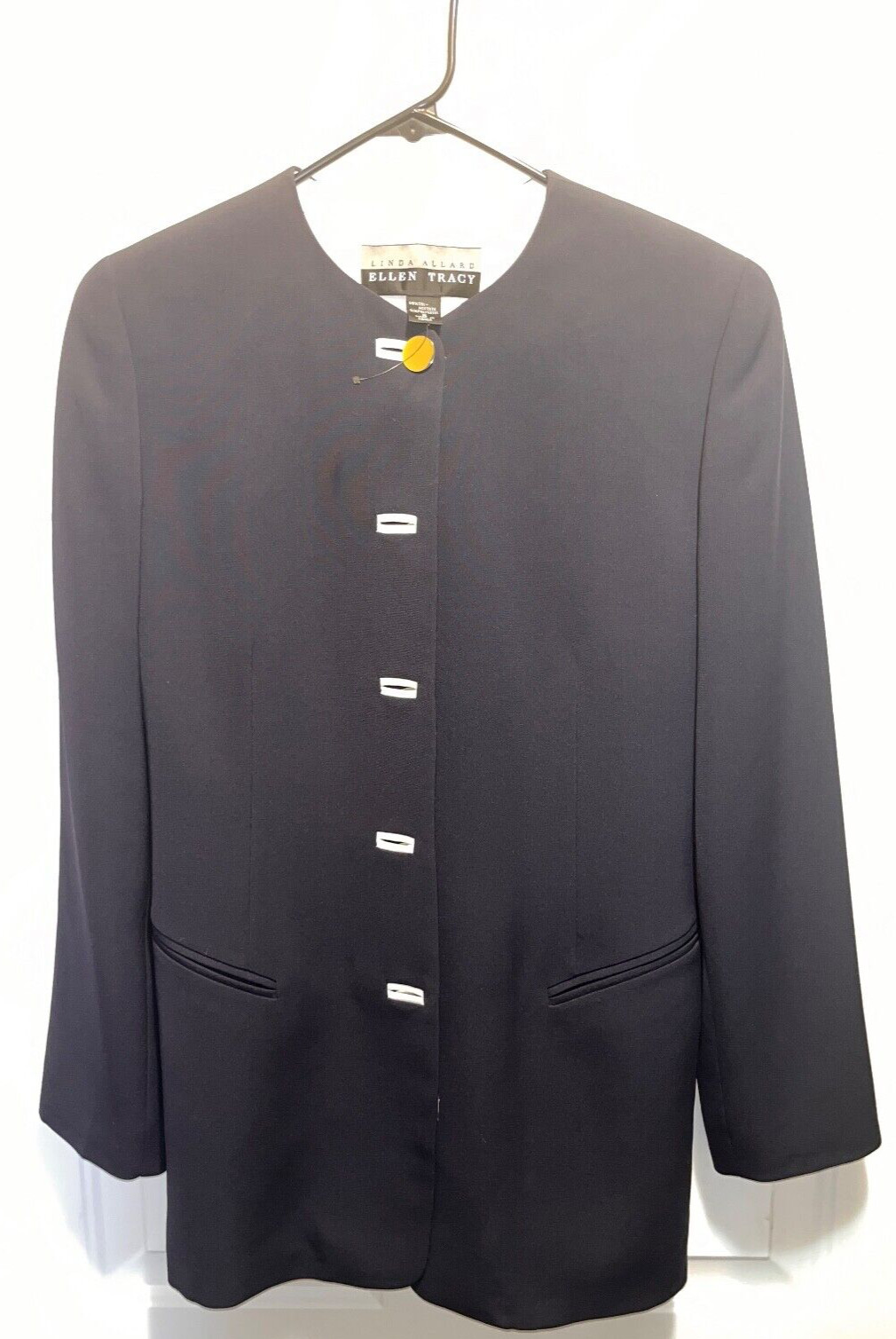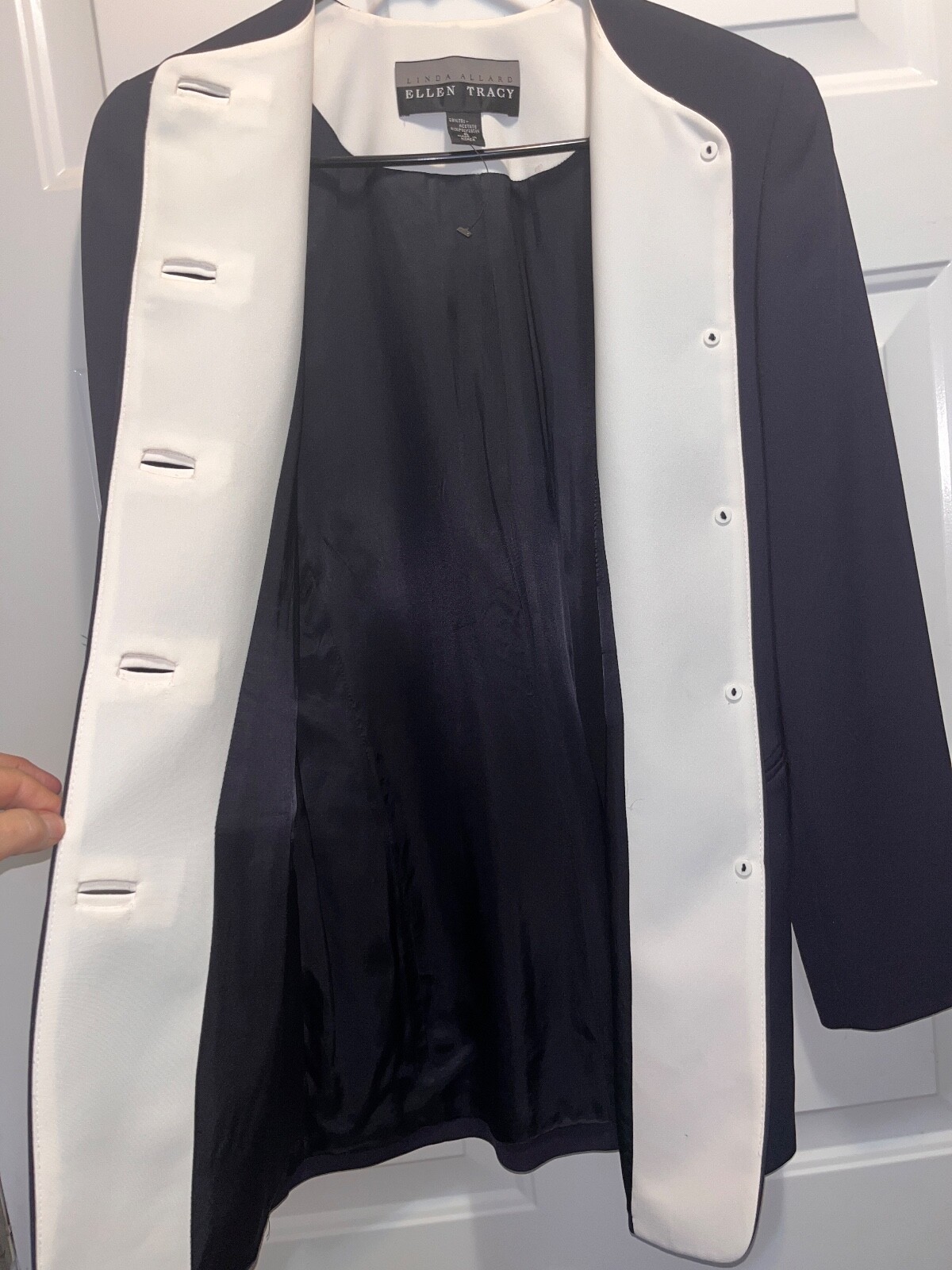 как выглядит Linda Allard Ellen Tracy Women s Size 6 Vintage Navy Blue White Trim Blazer фото