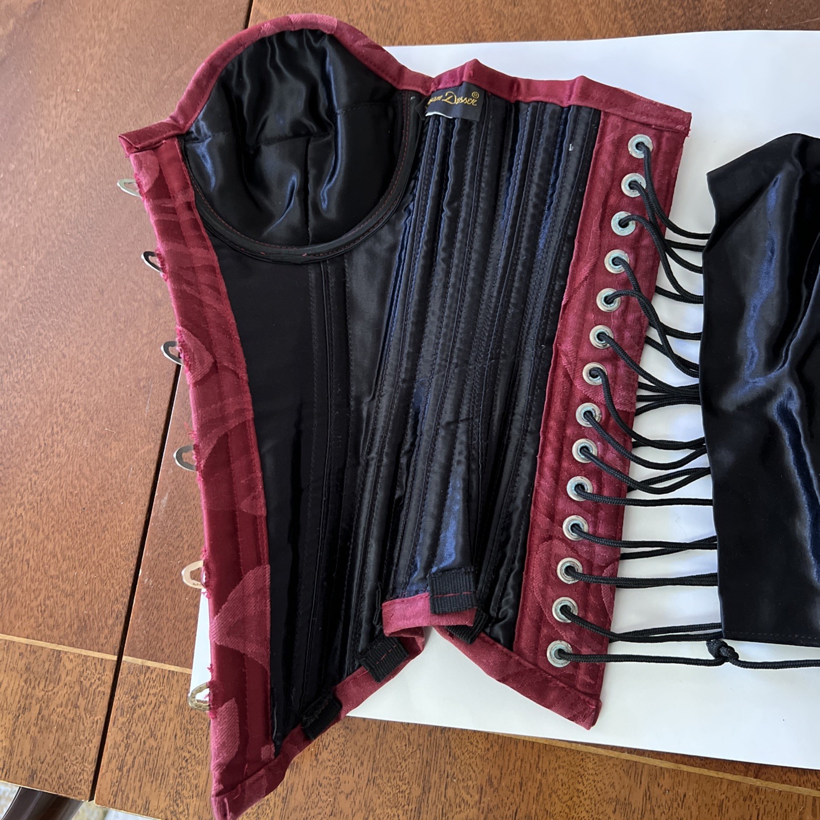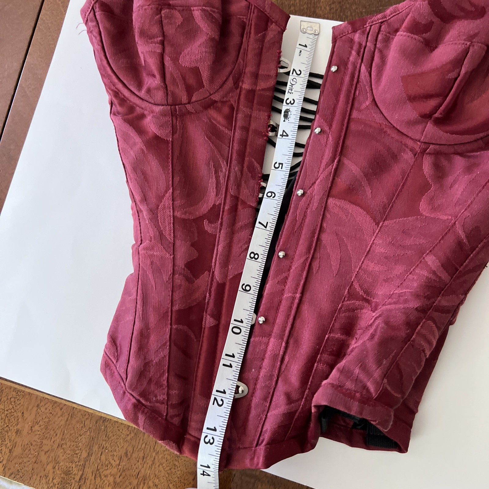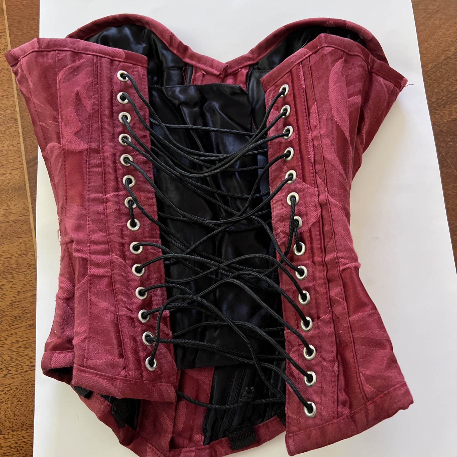 как выглядит Szivyshi Floral Jacquard Lace Up Corset Boned Overbust Womens Red, Size 18 фото