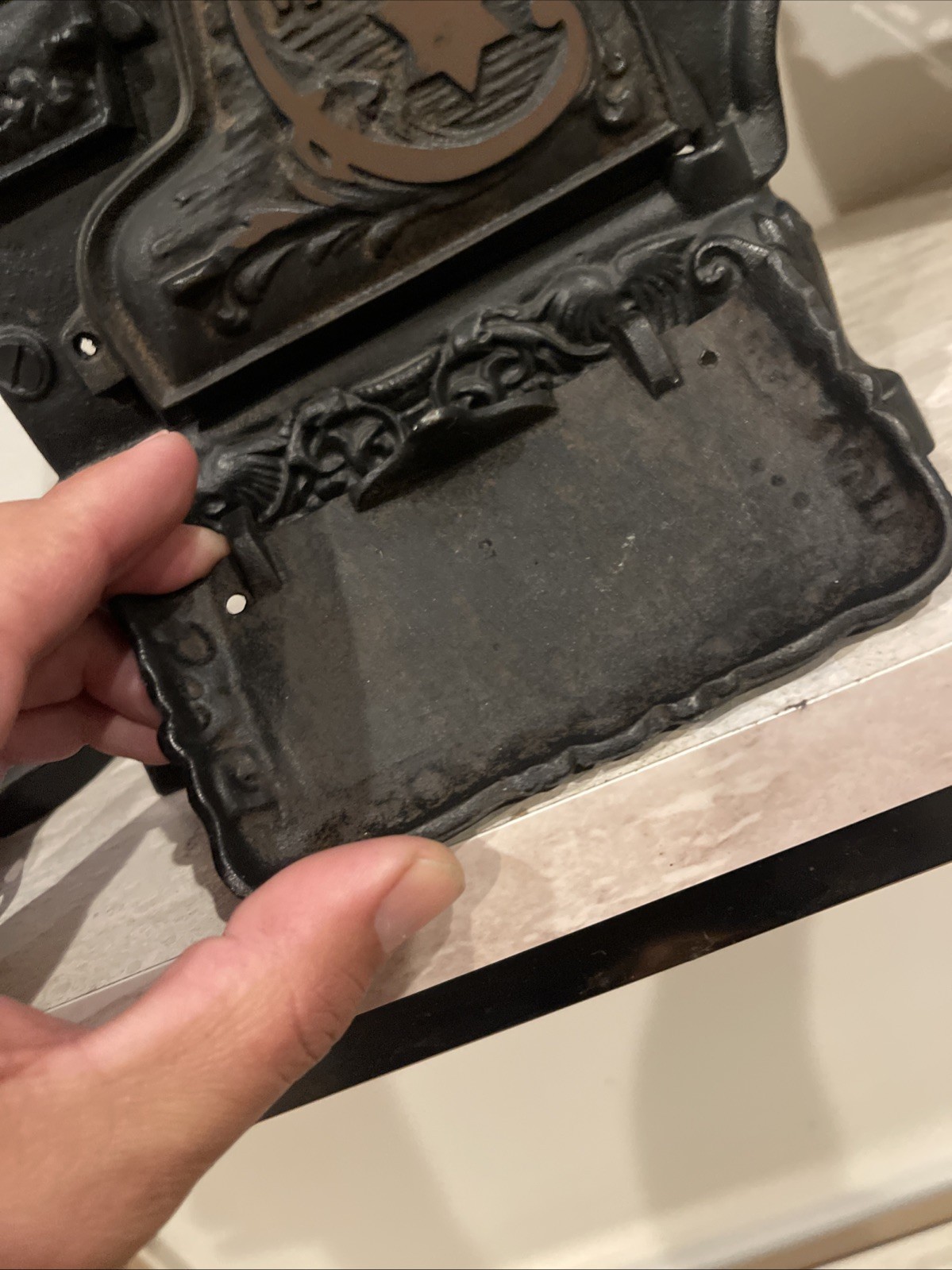как выглядит Vintage Cresent Cast Iron Miniature Cook Stove W/ Accessories Toy фото