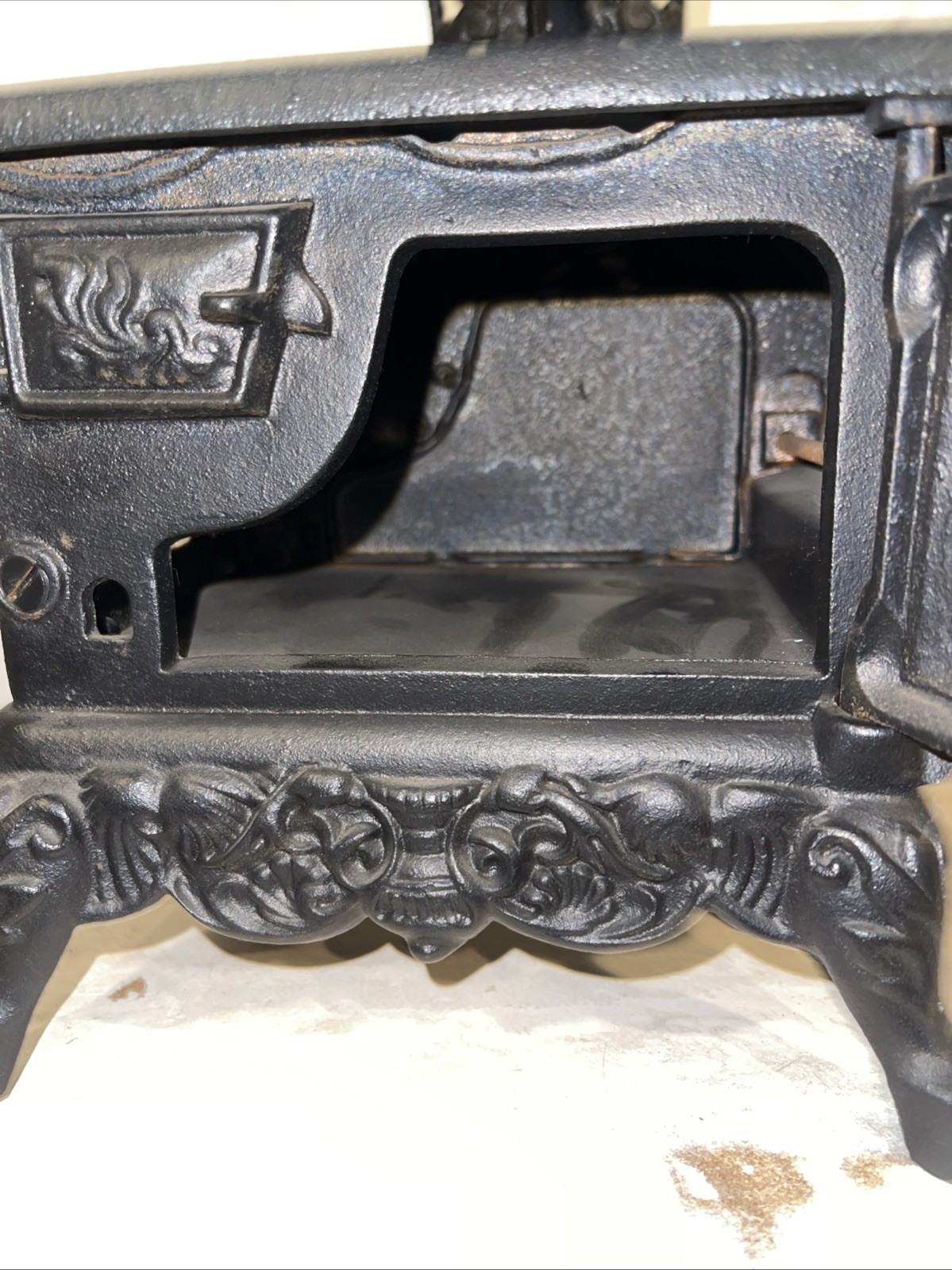 Vintage Cresent Cast Iron Miniature Cook Stove W/ Accessories Toy