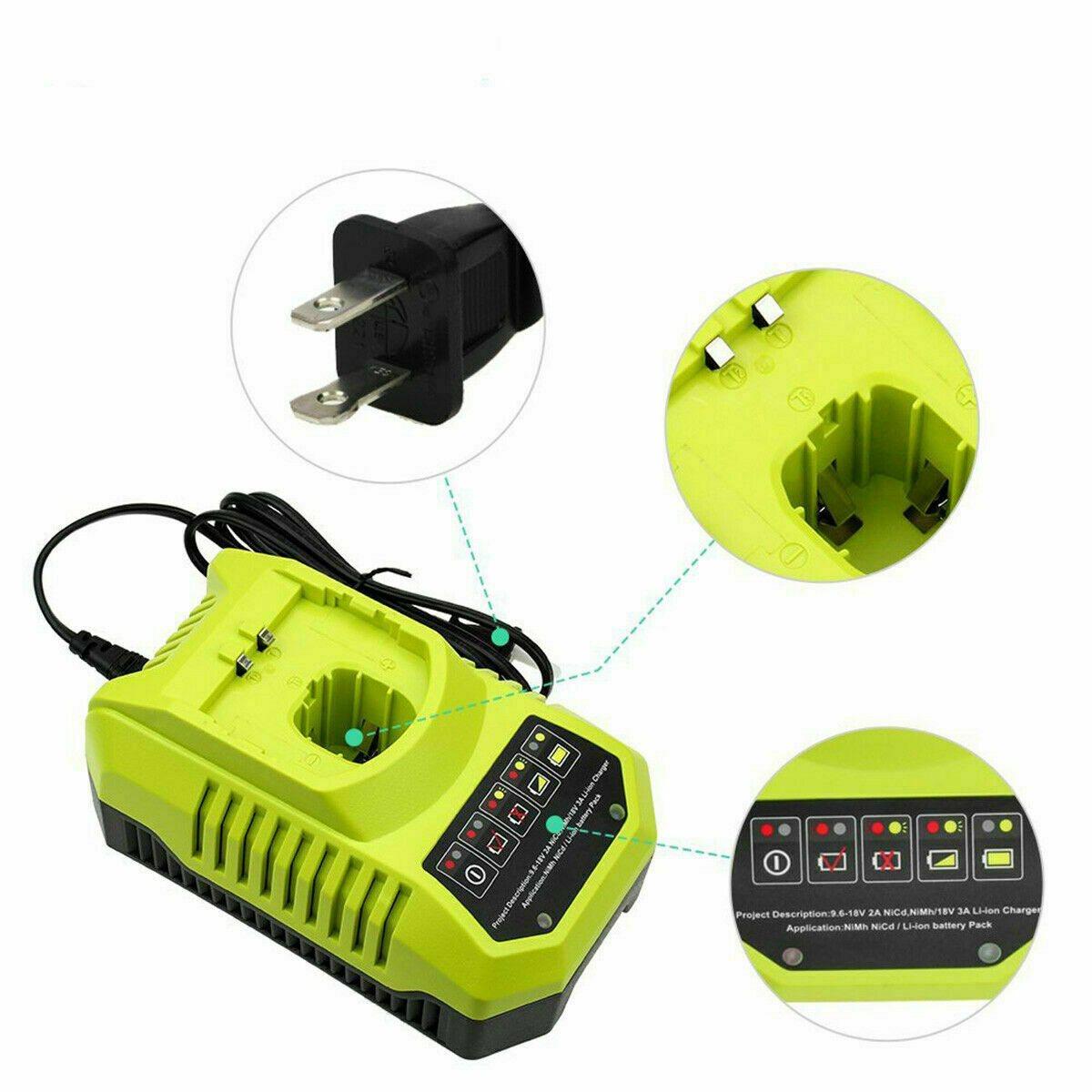 Compatible Models(charge: for Ryobi ONE+ 18V NI-CD & NI-MH & Li-Ion battery