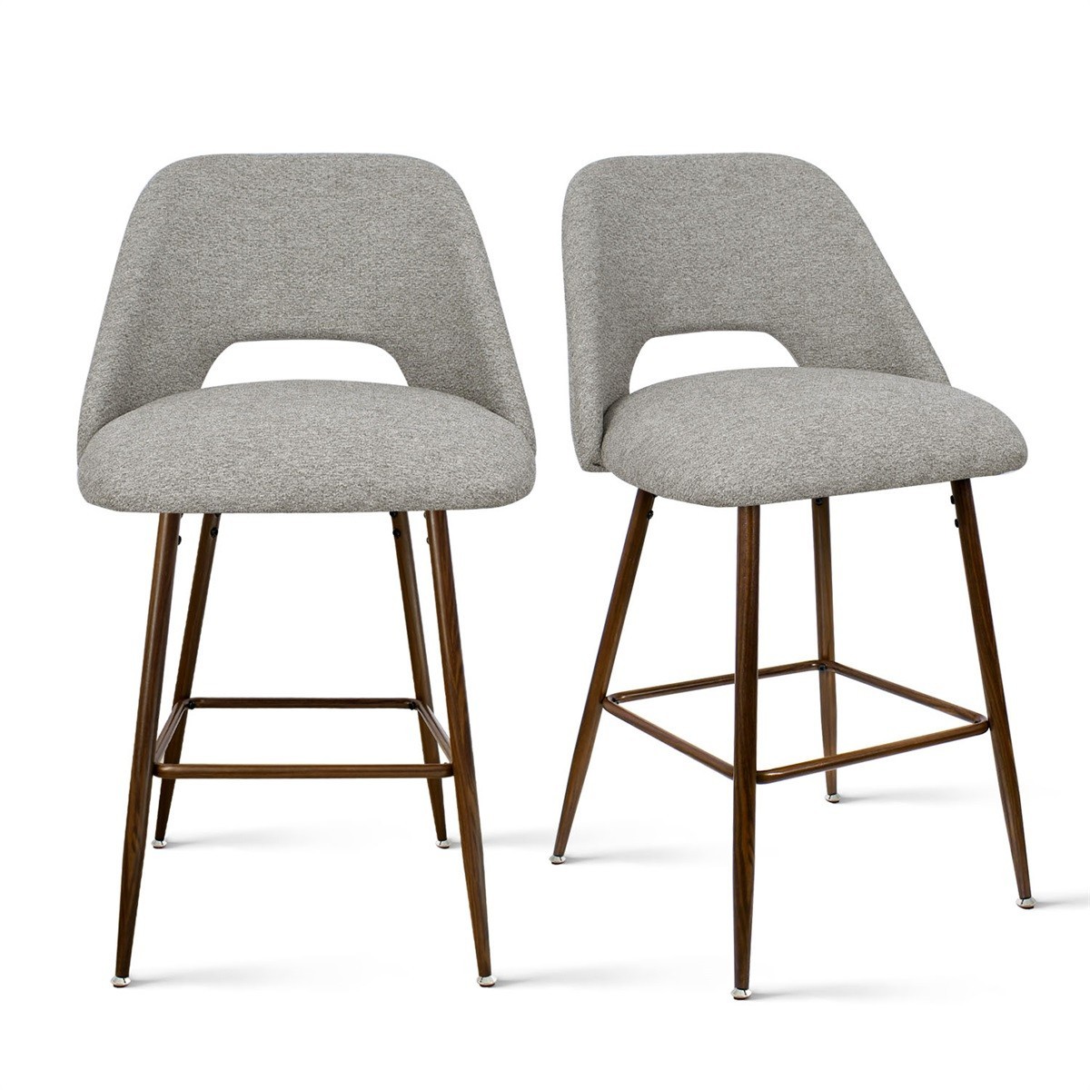 Set of 2 Upholstered Counter Height Bar Stools Walnut Finish Metal Legs