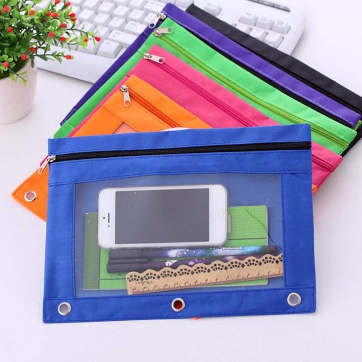 Spacious Black Canvas Pencil Pouch Set - 3-Ring Zipper Cases for Travel School