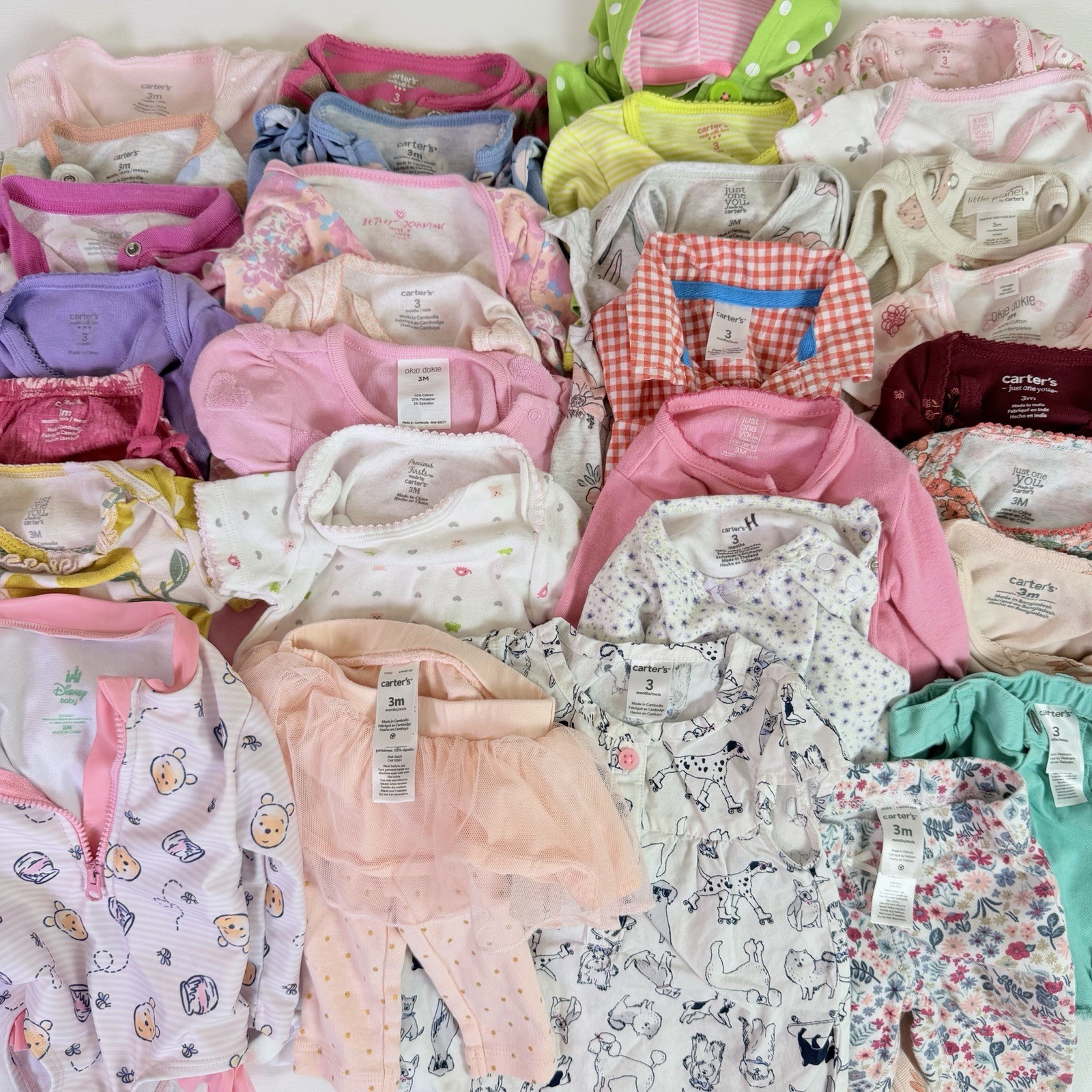 Girls Baby Bundle Clothes 3 Months 30pc Lot Onesies Footed Pajamas Assortment
