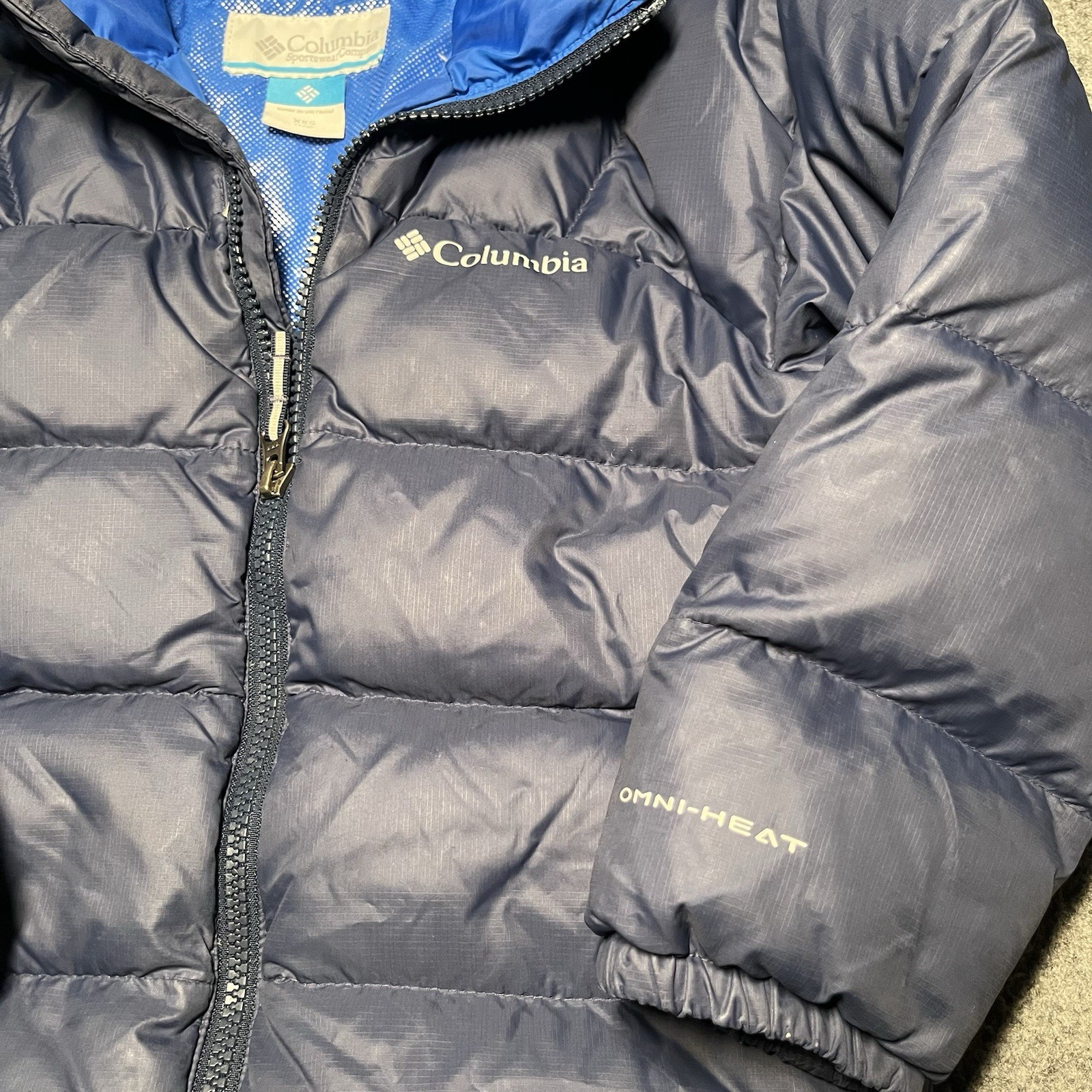 как выглядит Columbia Jacket Kids XXS 4/5 Blue Down Powder Lite Hooded Puffer Omni-Heat фото