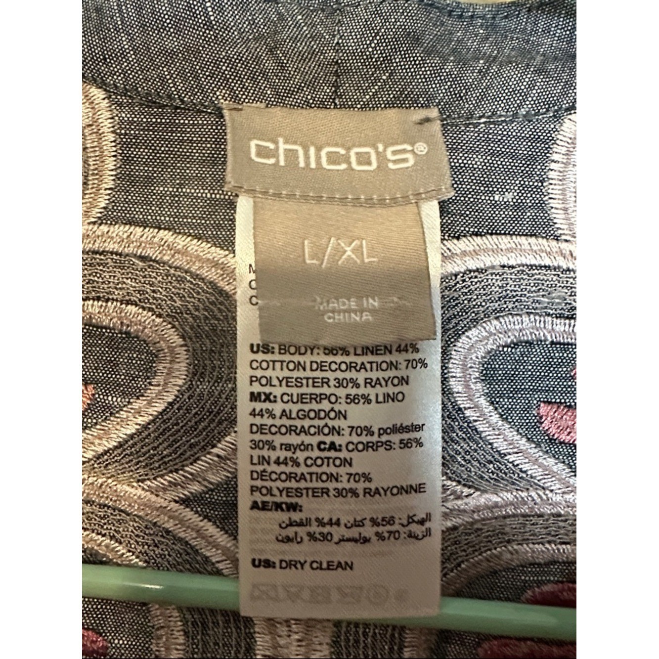 как выглядит Chicos Embroidered Lace Cutout Scalloped Hem Linen Cotton Kimono Jacket Large фото