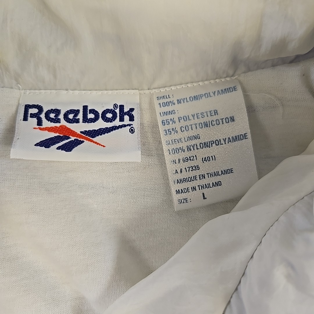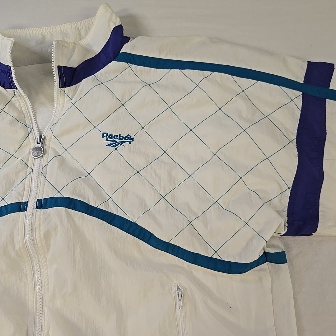 Vintage 90s Reebok Windbreaker Jacket Quilted Ivory Teal Purple Size Large