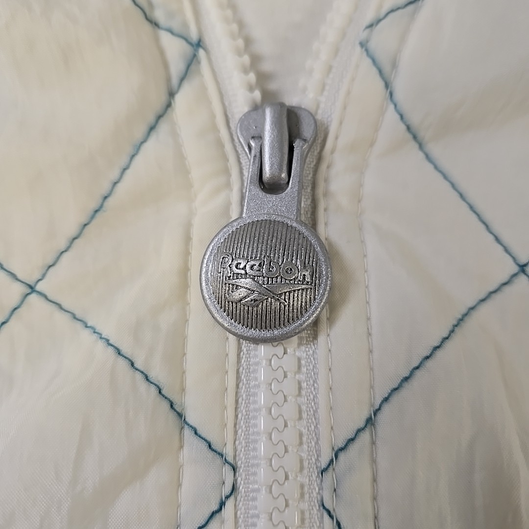 как выглядит Vintage 90s Reebok Windbreaker Jacket Quilted Ivory Teal Purple Size Large фото