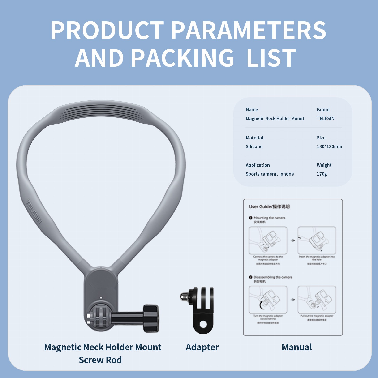 Mobile Magnetic Neck Holder Mount Adapter Screw Rod For GoPro Action Camera D