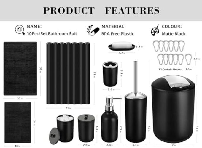 Размер: 7Pcs Bathroom Set + Shower Curtain + 2Pcs Rugs