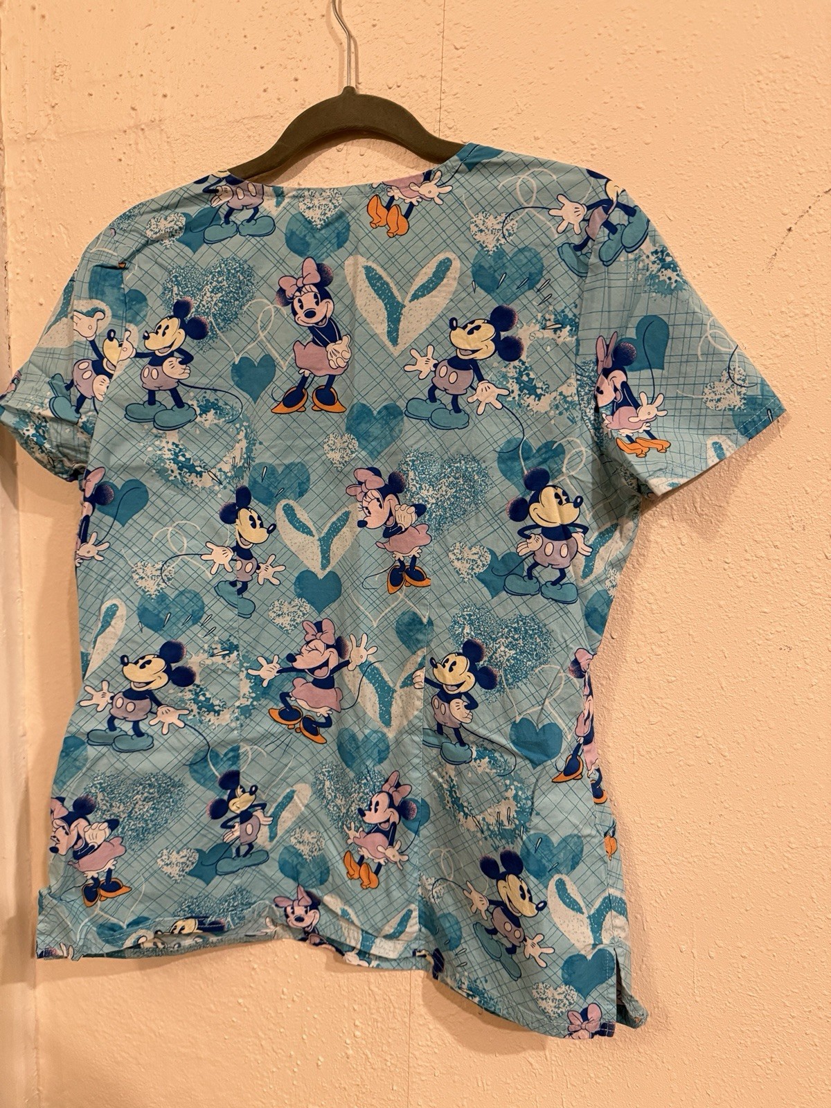 Disney Women's Patterned Scrub Top Blue Pink Size M Medical