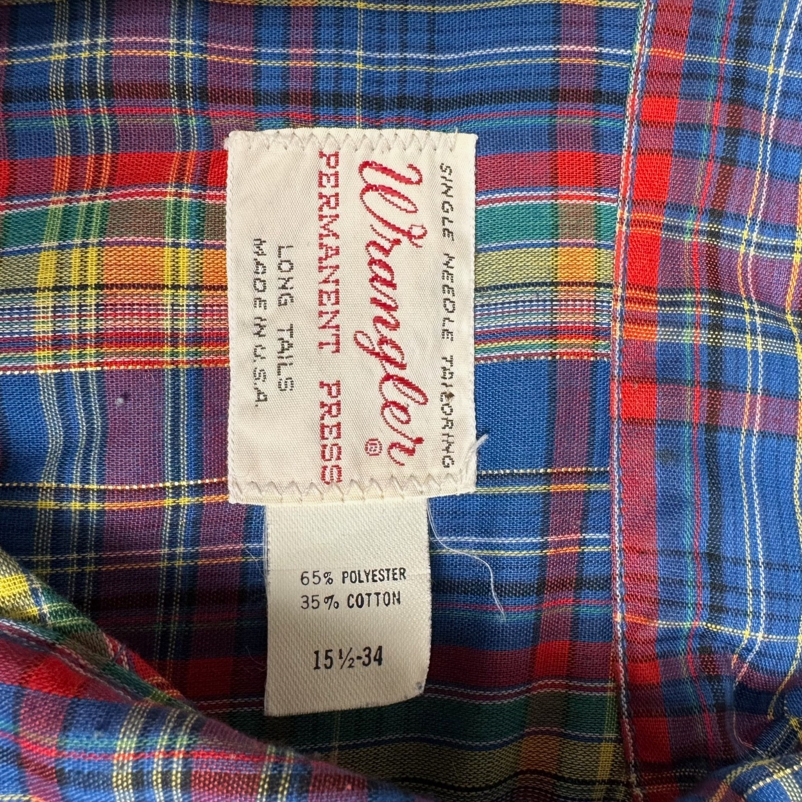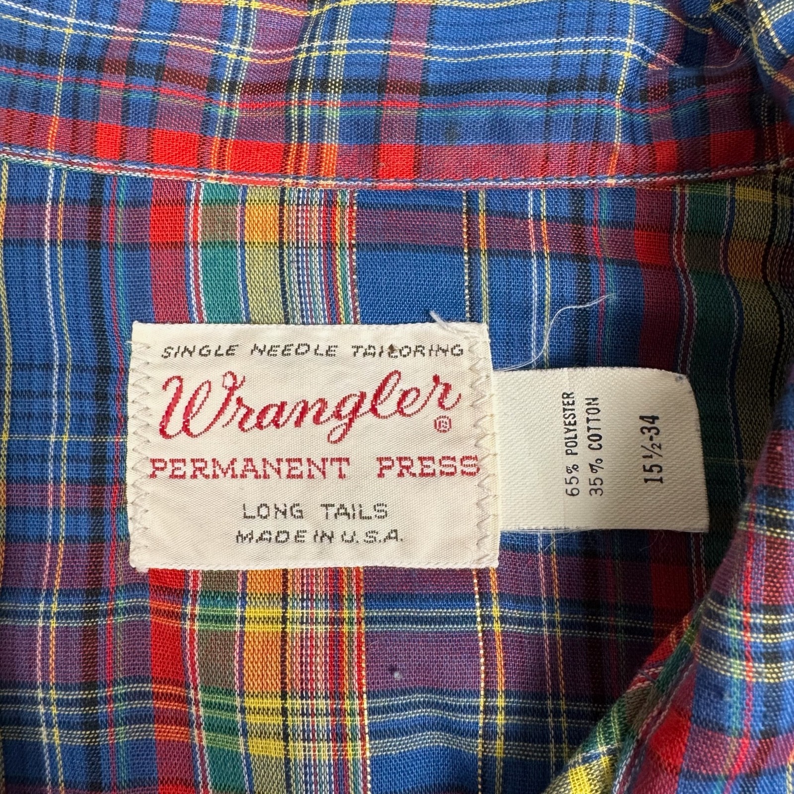 Vtg 70s Wrangler Pearl Snap Shirt Mens S Long Sleeve Shirt Rainbow Plaid Western