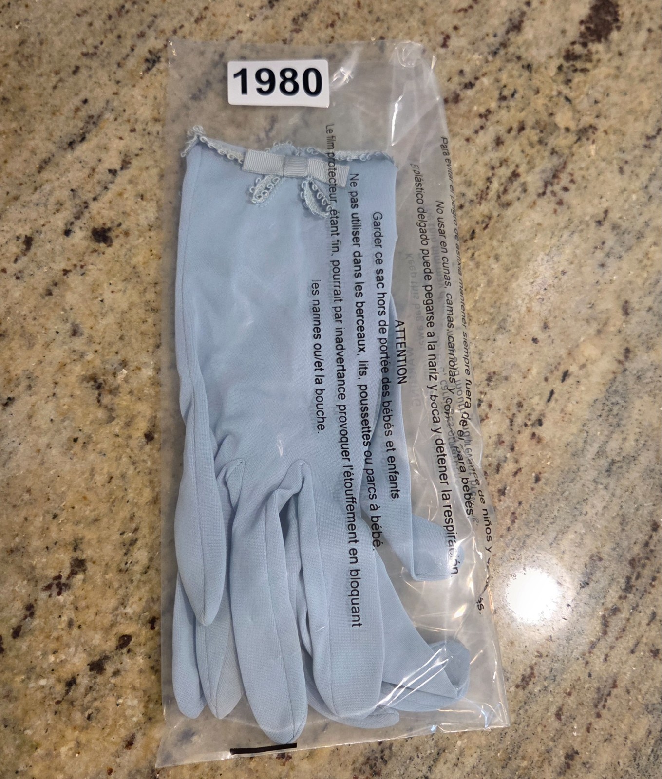 Vintage Womens Size S/M 6.5 Blue Nylon Stretch Formal Gloves Bow Wrist