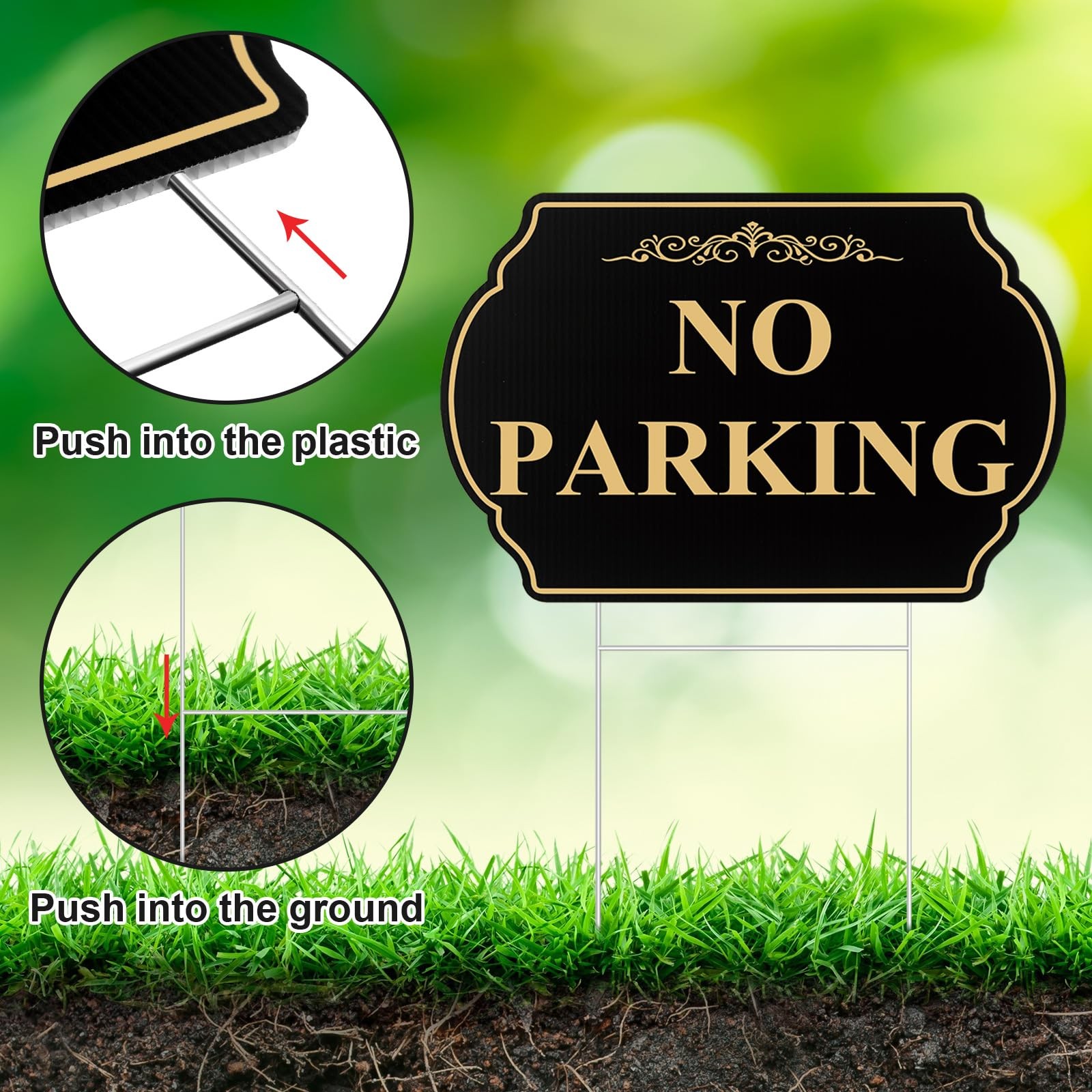 как выглядит Juexica 6 Pcs No Parking Signs with Stand 12 x 8 inches / 30 x 20 cm, silver фото