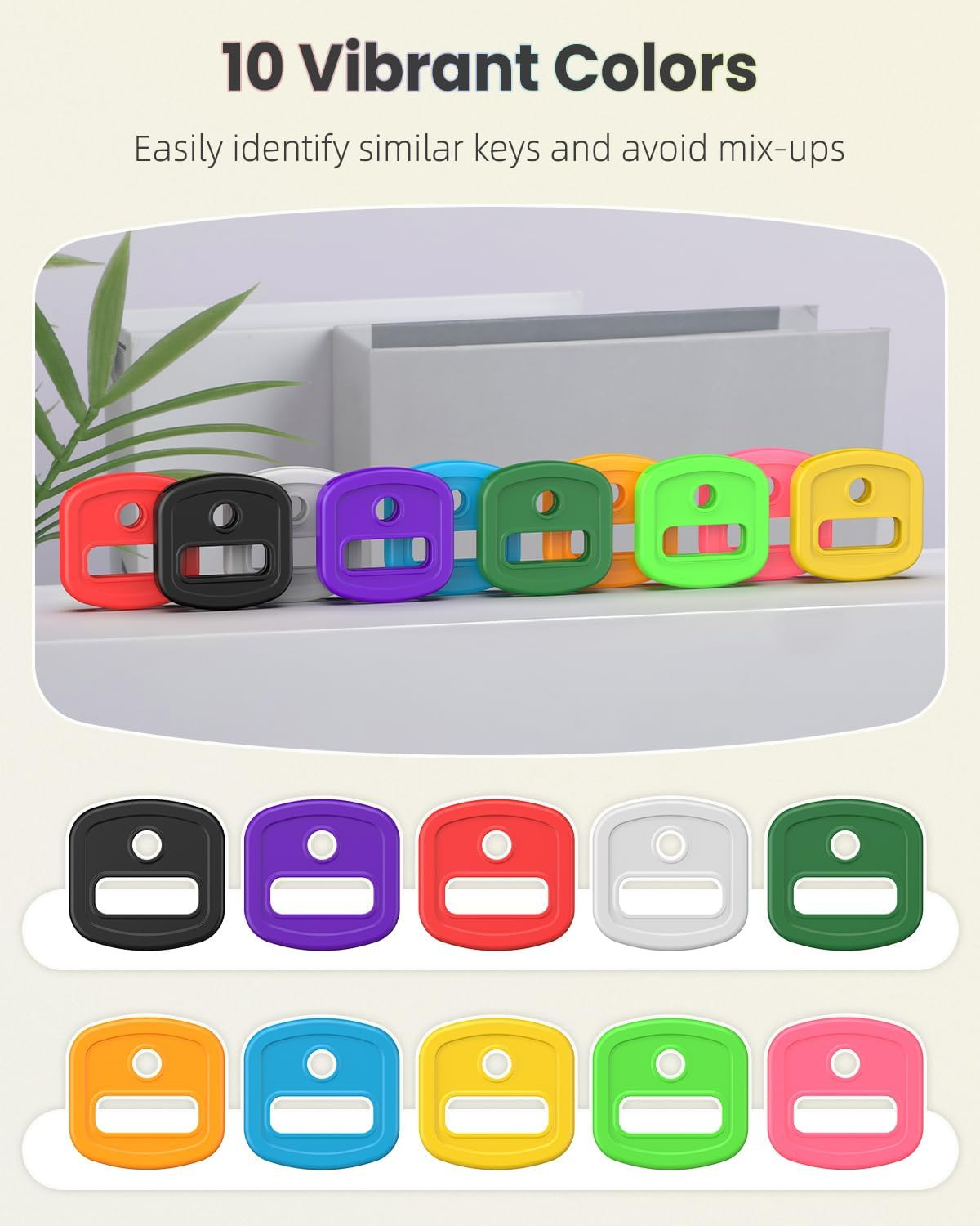 • 10 Pcs Key Covers Caps, 1" Key Identifiers with Labels, Soft Stretchy Key Covers