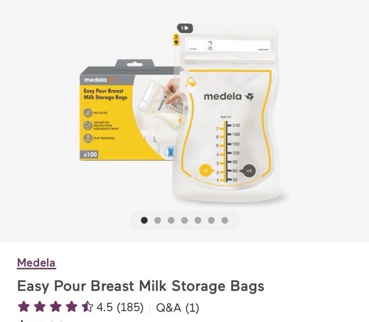 Medela Breast Milk Storage Bags, 7-oz, Pack of 100, Sealed