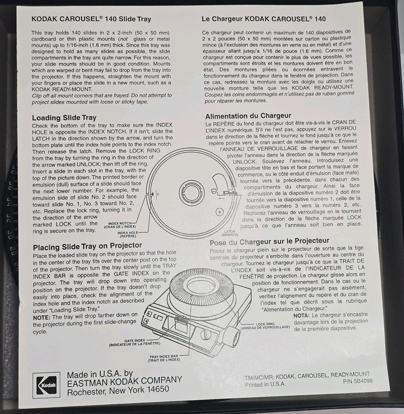 Vintage Kodak Carousel 140 Slide Tray Projector Original Box w/Slide List Manual
