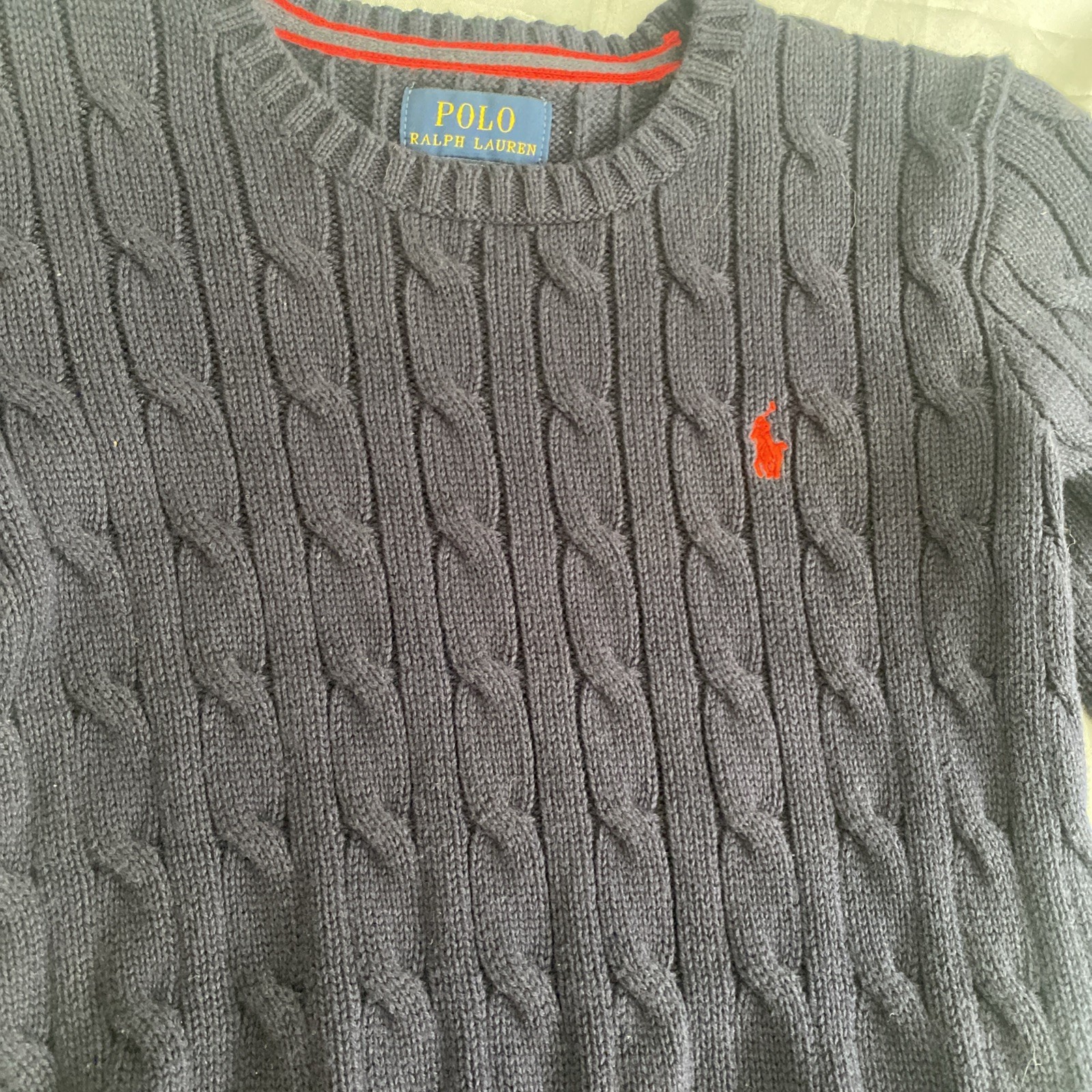 как выглядит POLO Ralph Lauren Cable-Knit Cotton Sweater Boy NWT Size 4 Pony Navy Blue фото