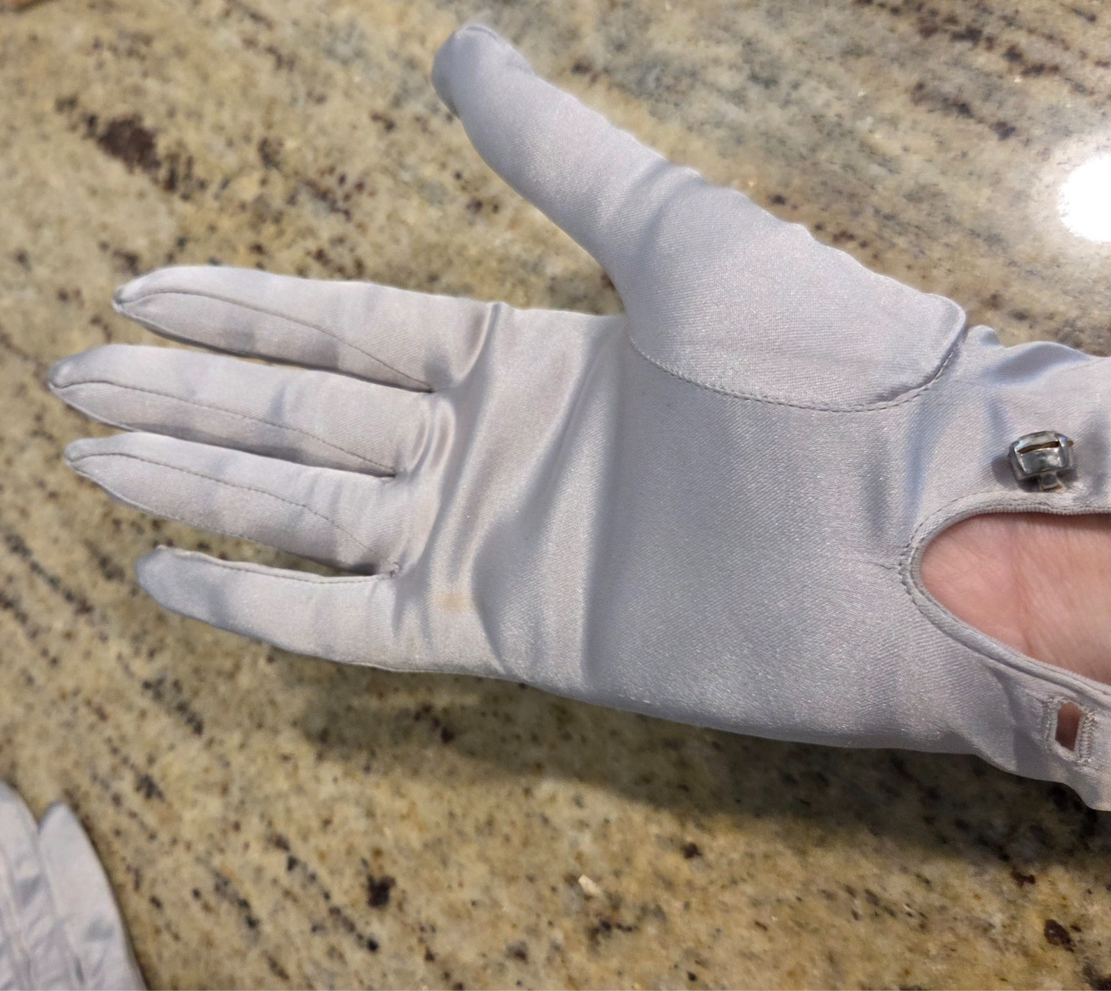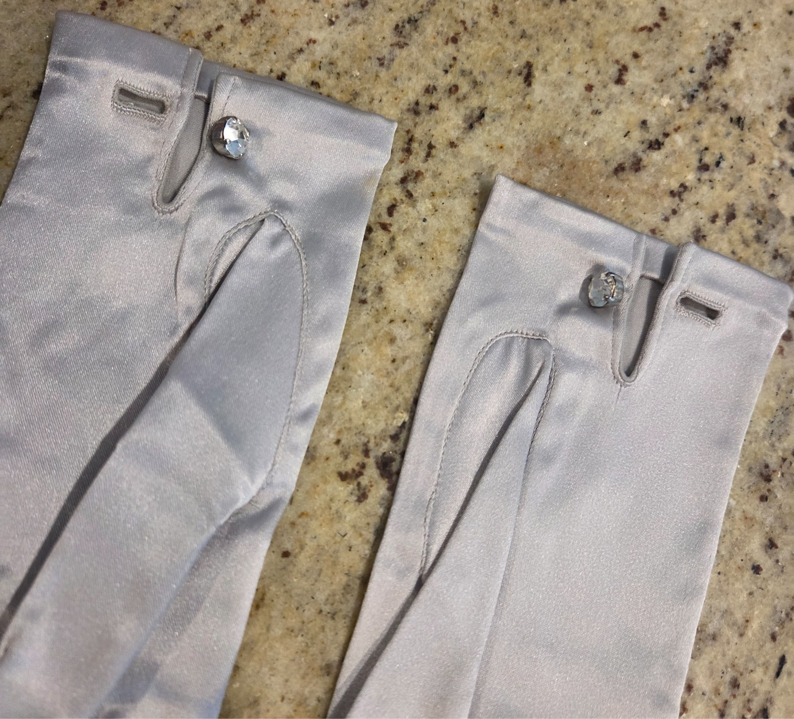 как выглядит Vintage Womens Size M/L Gray Satin Stretch Formal Gloves Rhinestone Button фото