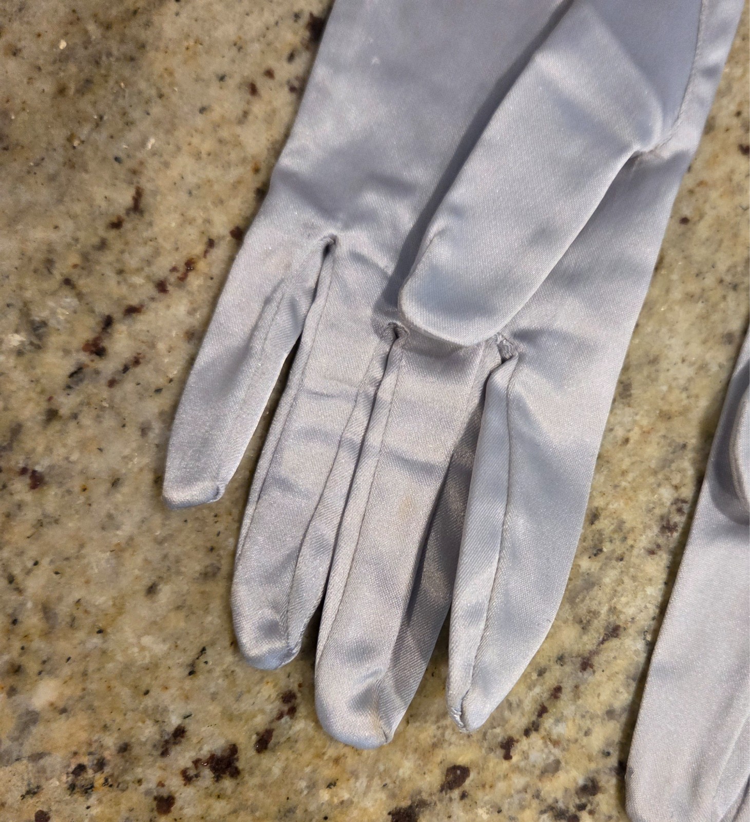 Vintage Womens Size M/L Gray Satin Stretch Formal Gloves Rhinestone Button