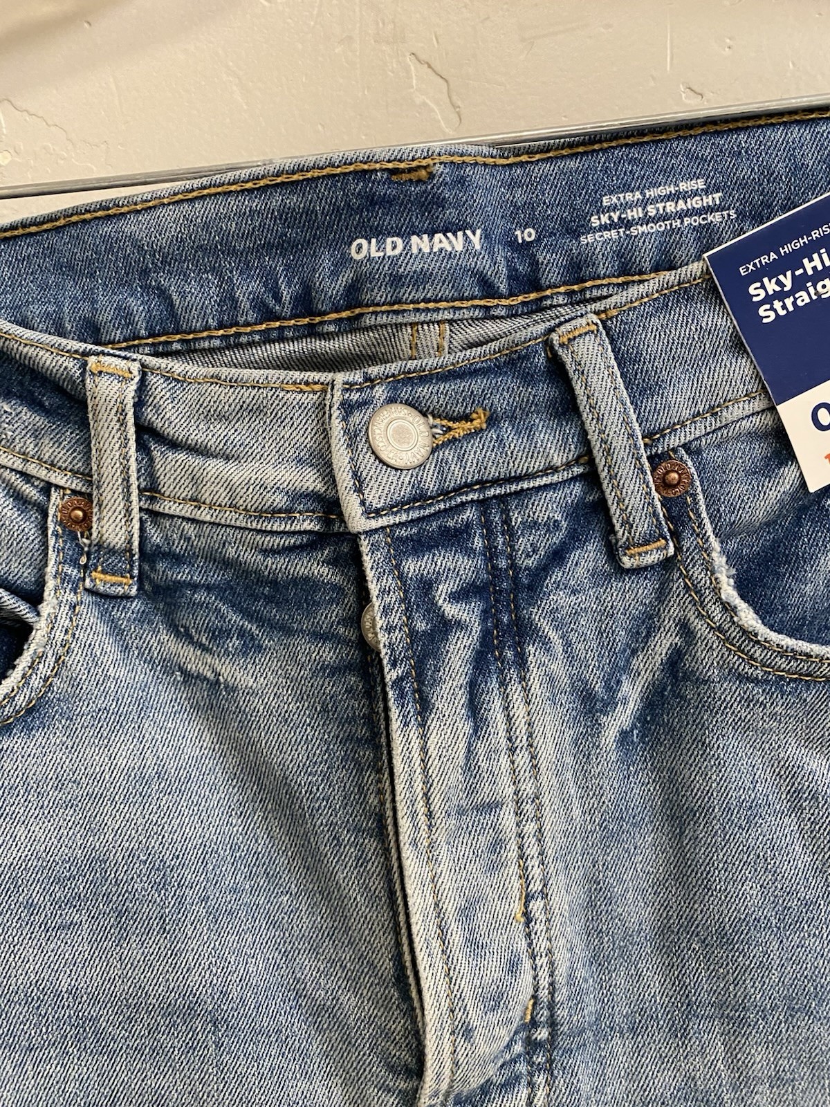 как выглядит Old Navy NWT Women s Size 10 Extra High Rise Sky Hi Straight Distressed Jeans фото