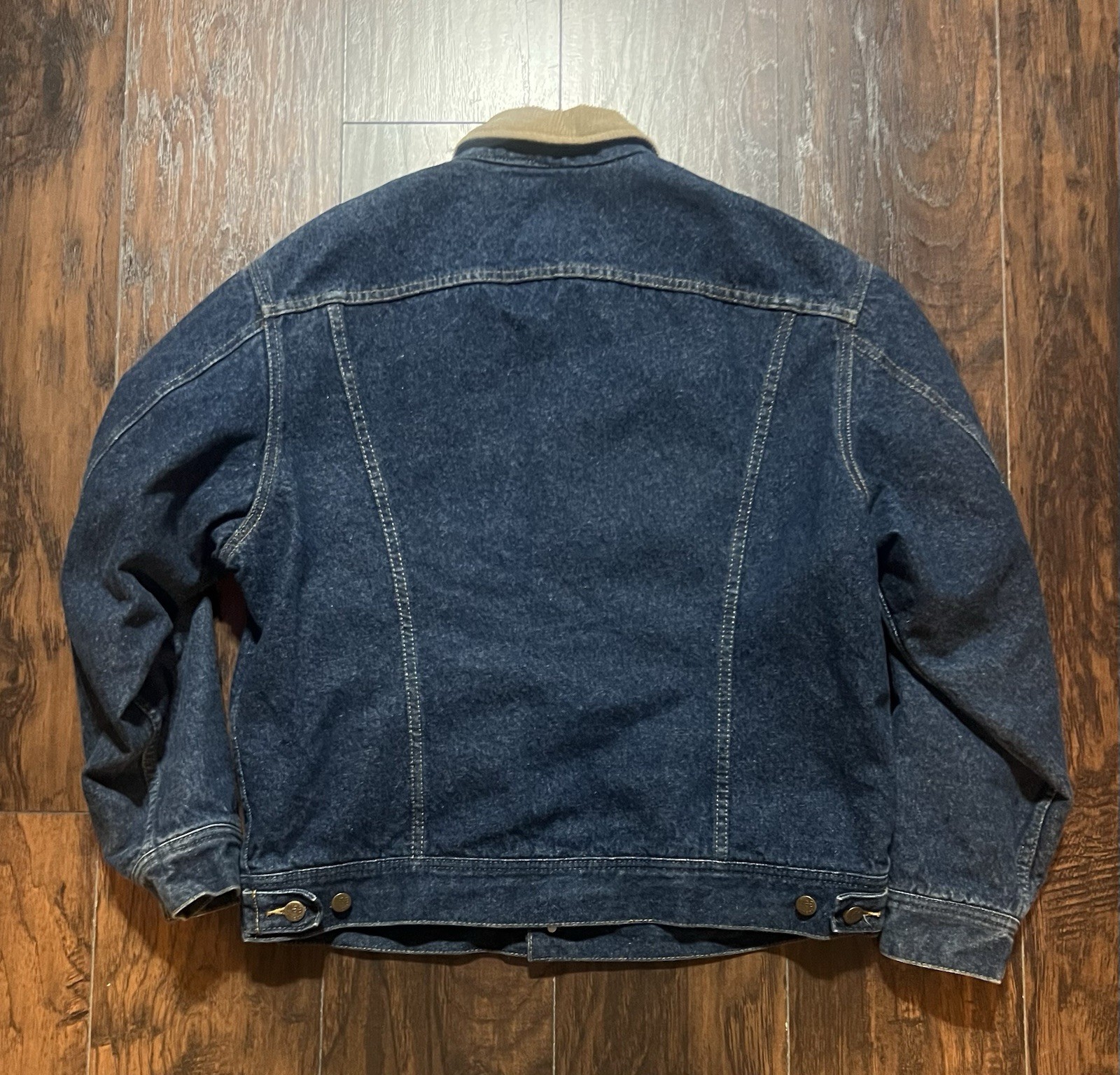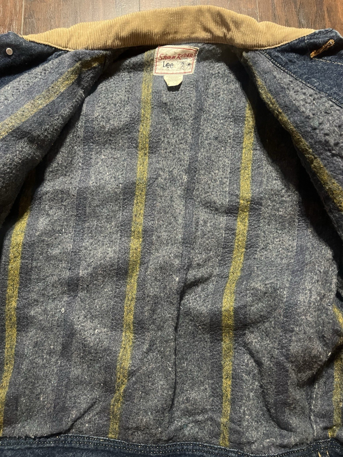 Vintage 80 s Lee Storm Rider Blue Denim Trucker Jacket Blanket Lined Mens Large.