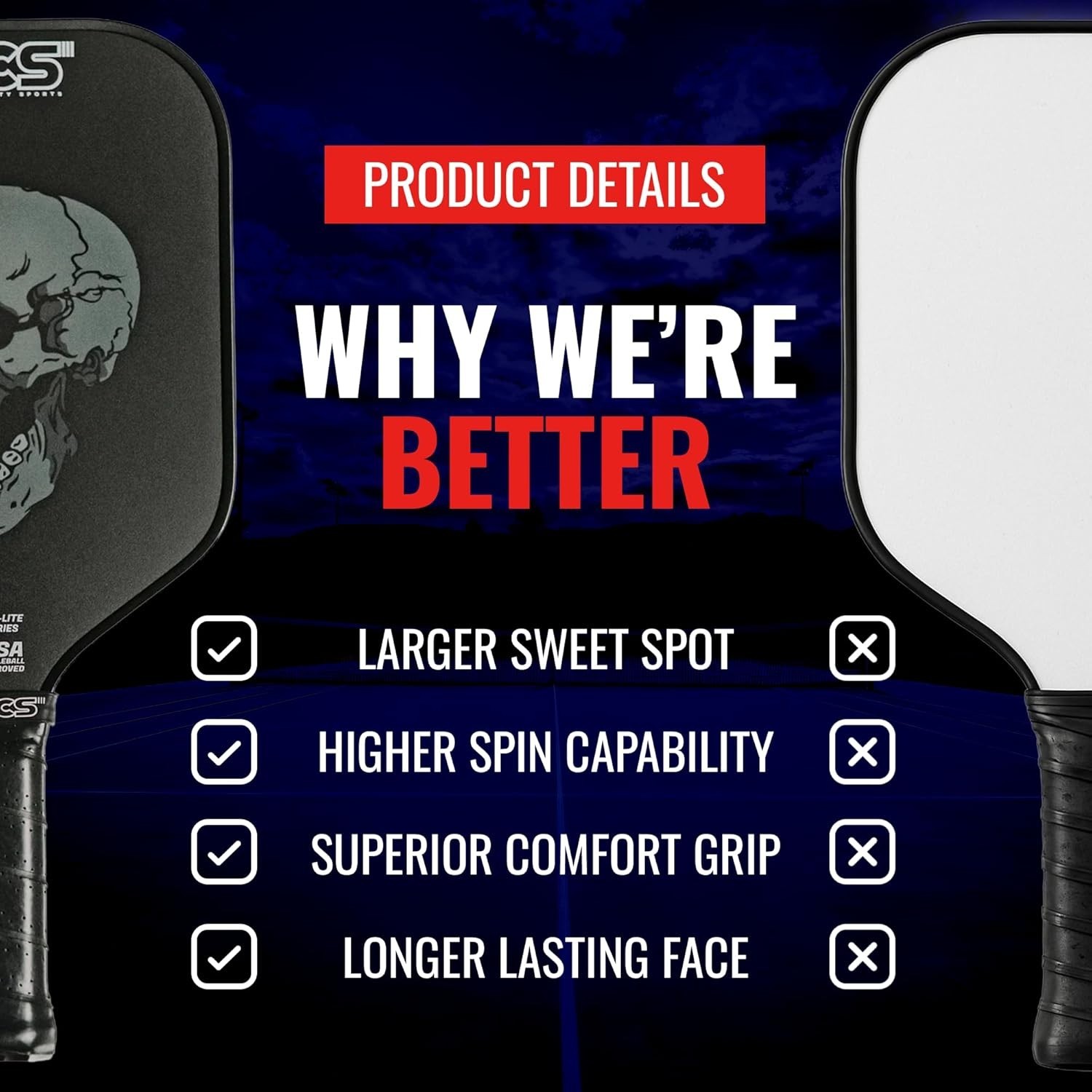 SCS Carbon Fiber Pickleball Paddle - USAPA 2024, Lightweight, Enhanced Spin