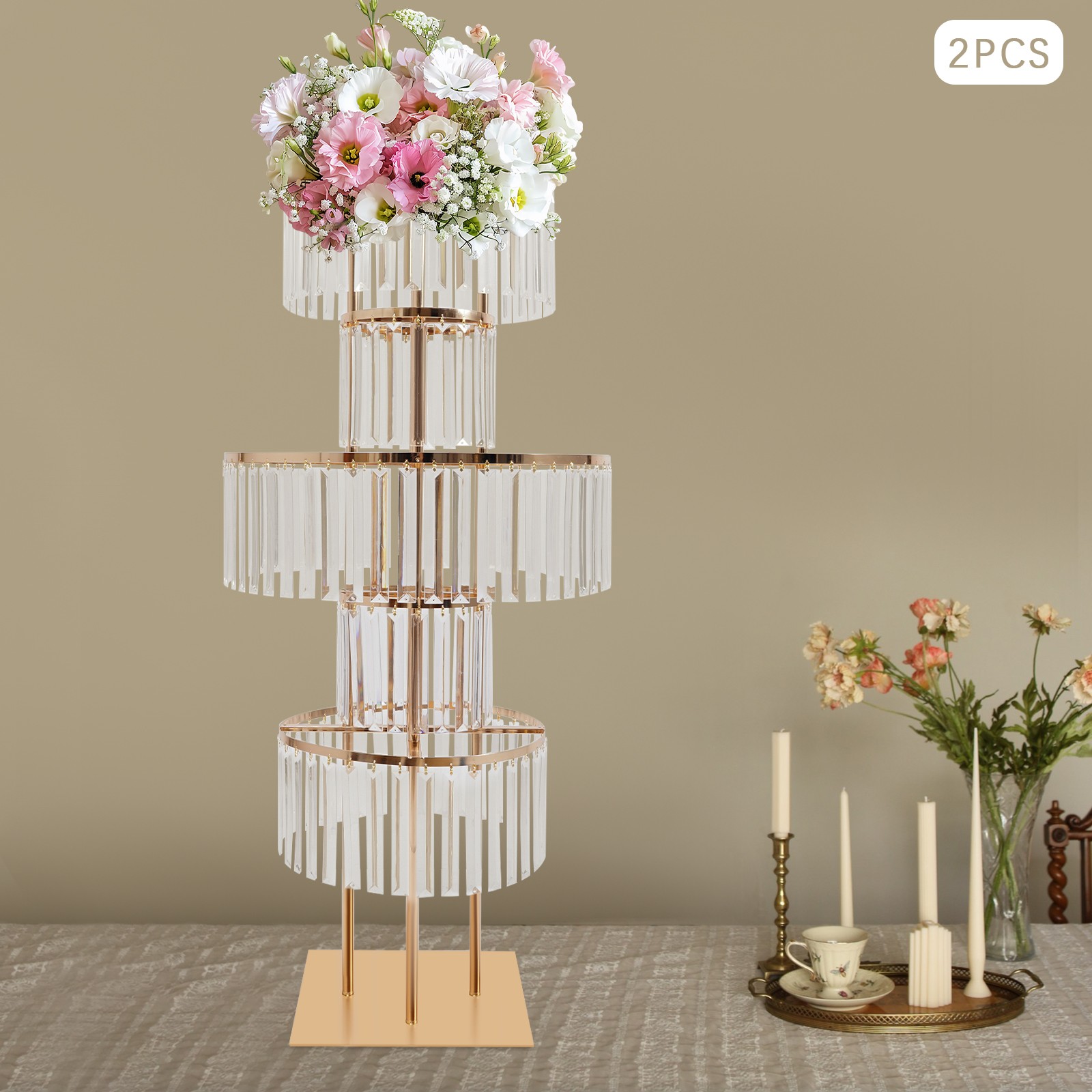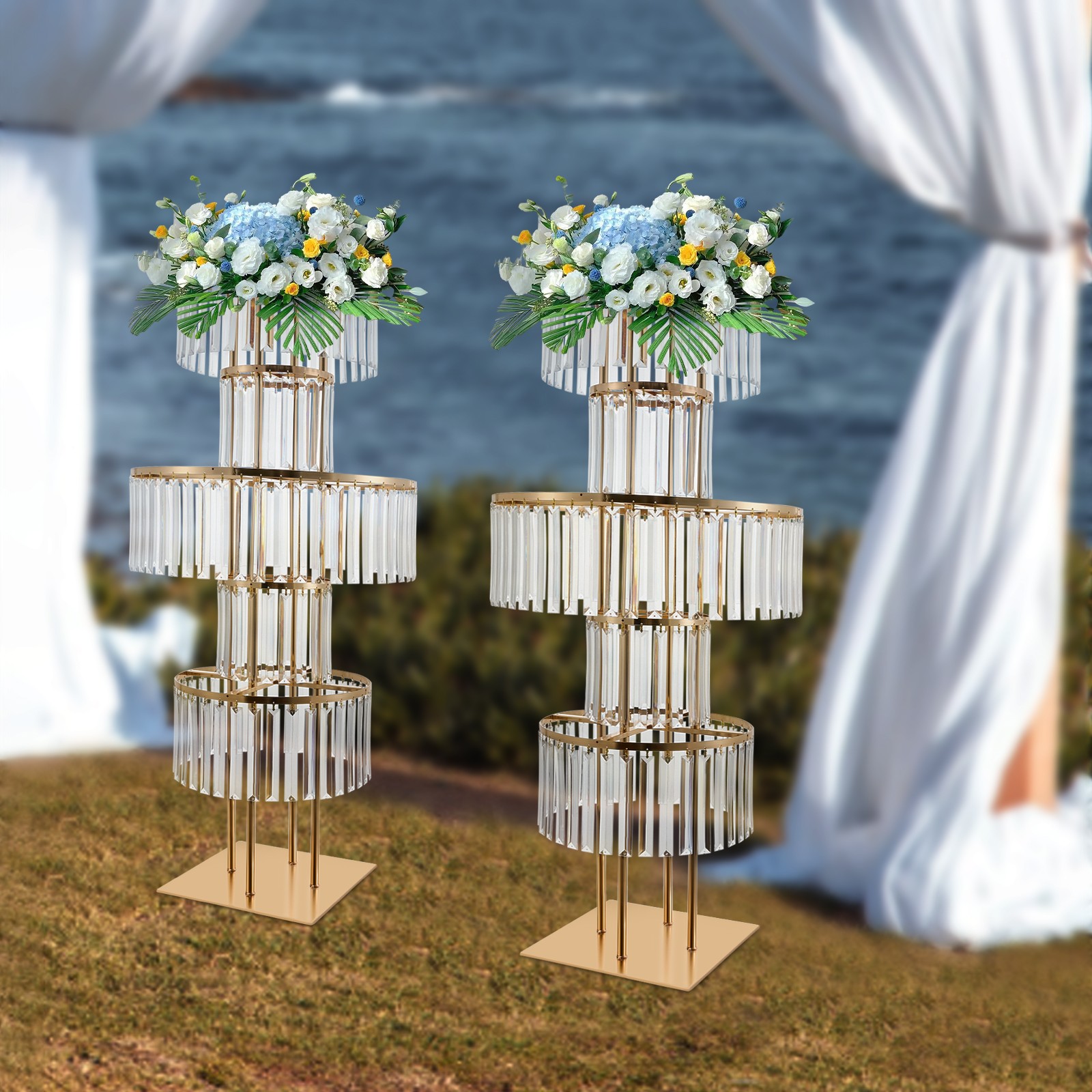 5-Tier Gold Crystal Flower Stand Wedding Party Events Table Decor Metal Pedestal