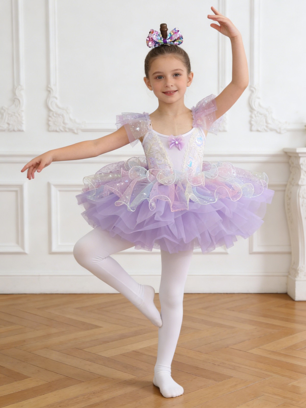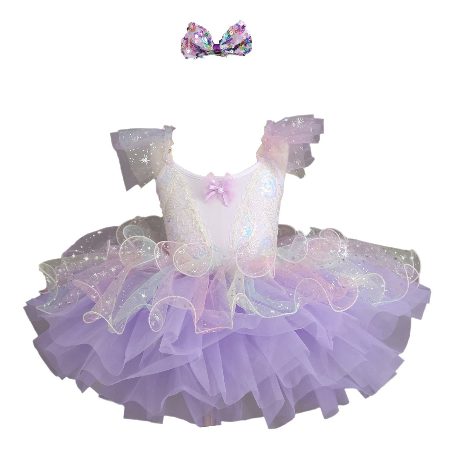 Girls Ballerina Competition Tutu Dress Skating Ballet Dancewear Skirted Dance