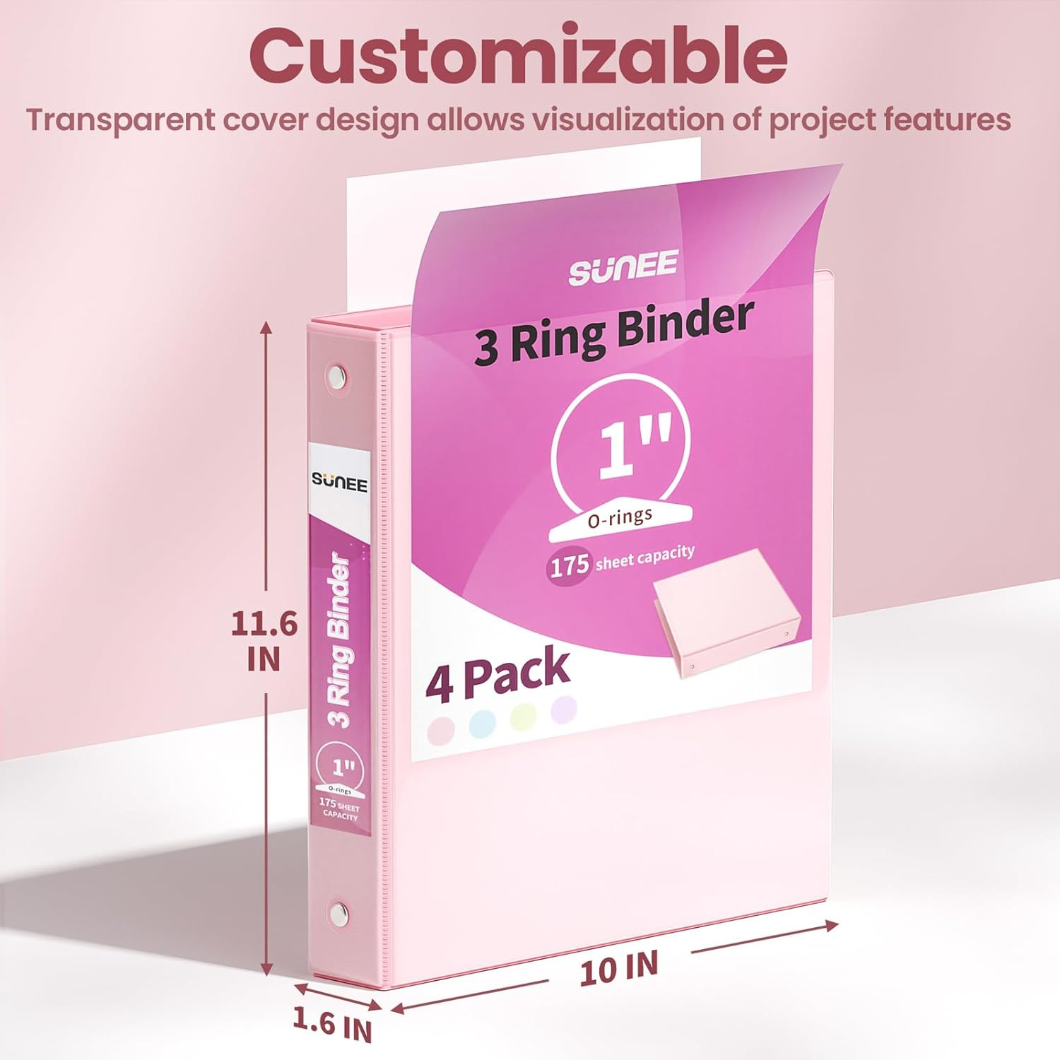 3 Ring Binder 1 Inch 4 Pack, Clear View 1 Binders Three Ring Pvc-Free Fit 8.5X
