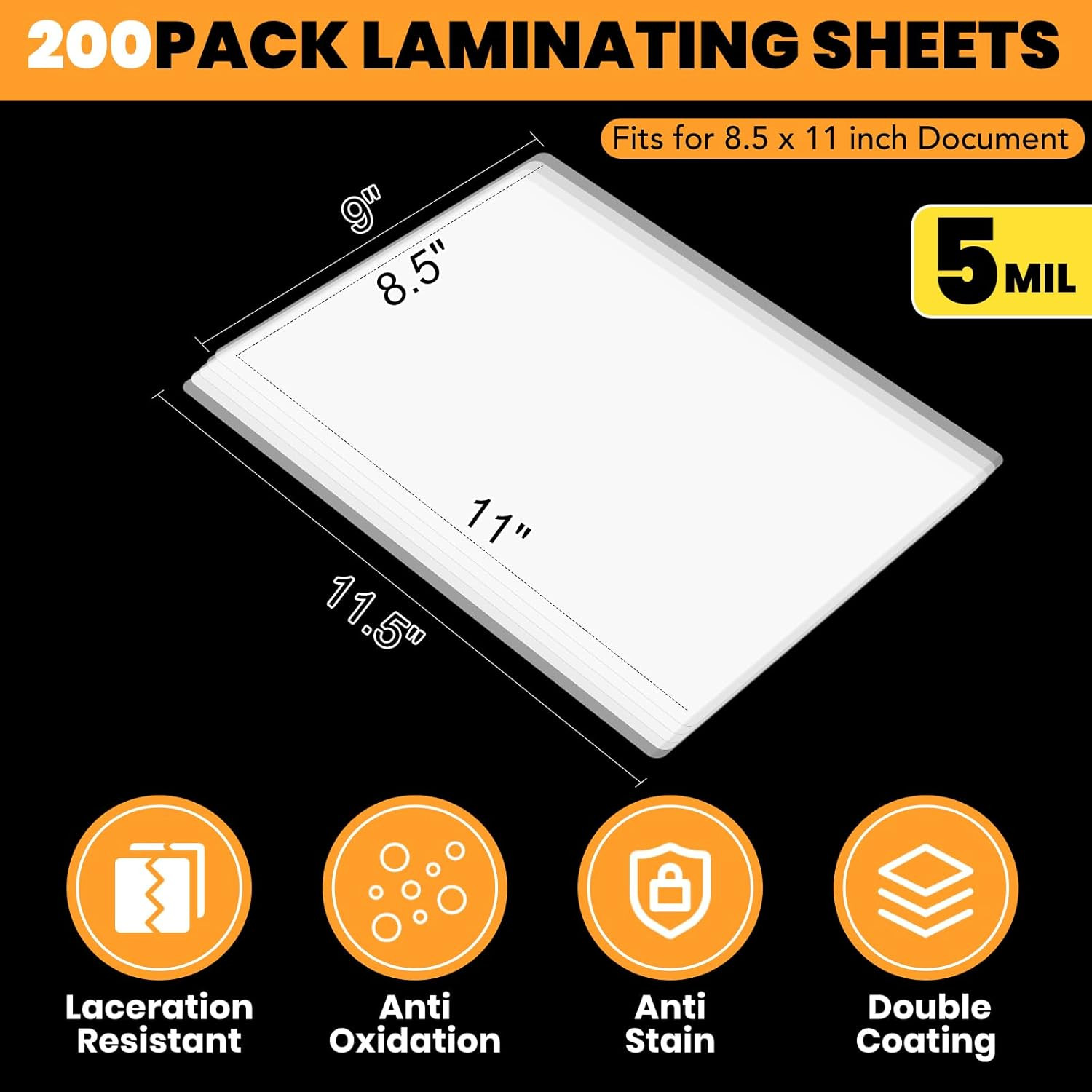 200 Pack 5 Mil Laminating Sheets, Holds 8.5 X 11 Inch Sheets,9 X 11.5 Inches The