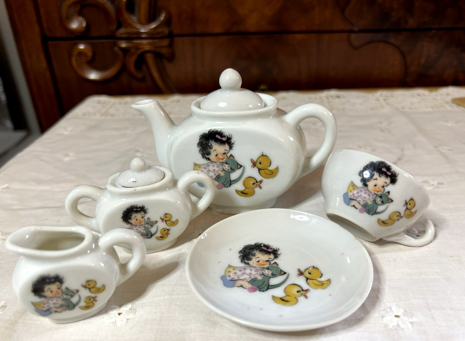VTG Childs Porcelain Miniature 7 Piece Tea Set Made In Japan Little Girl Toys