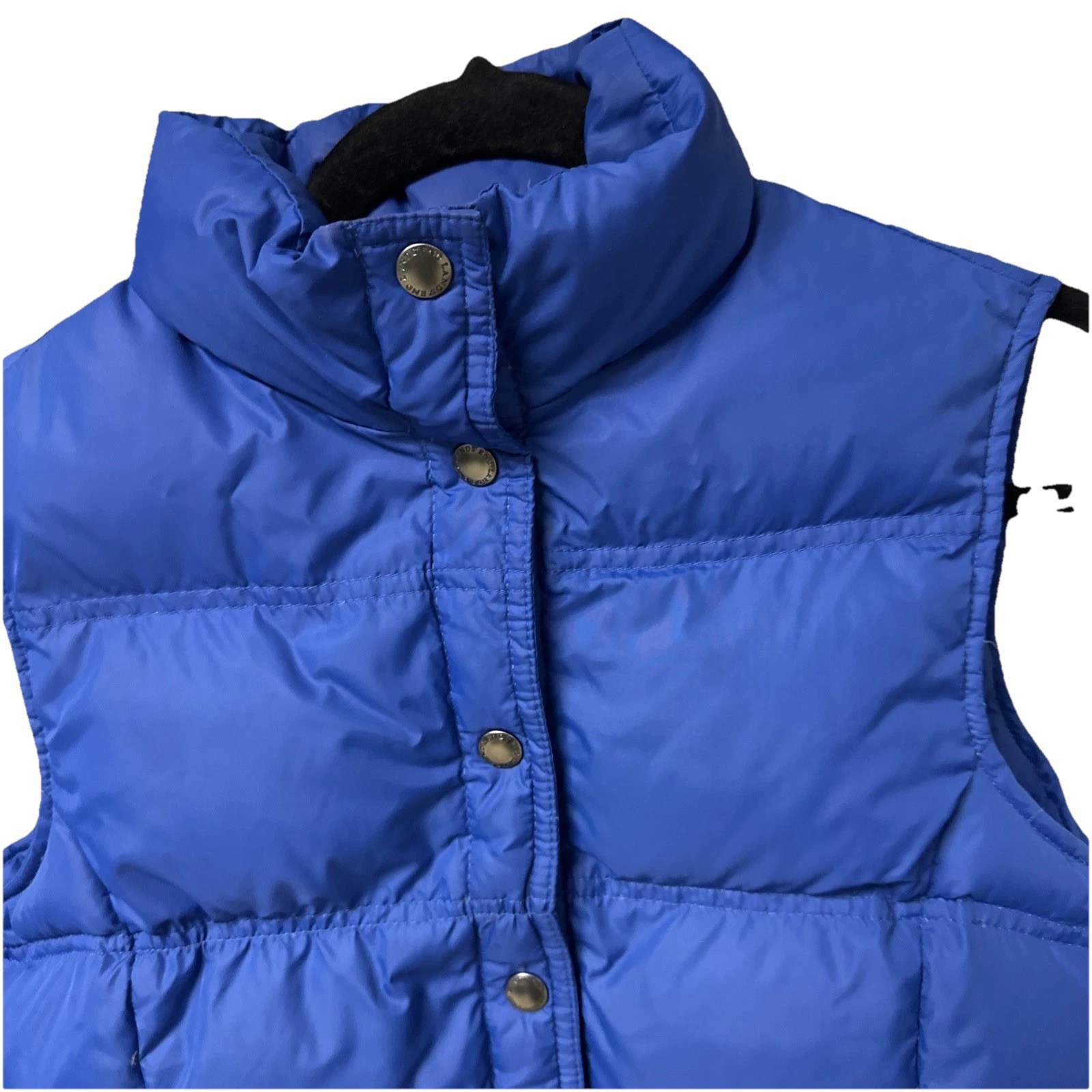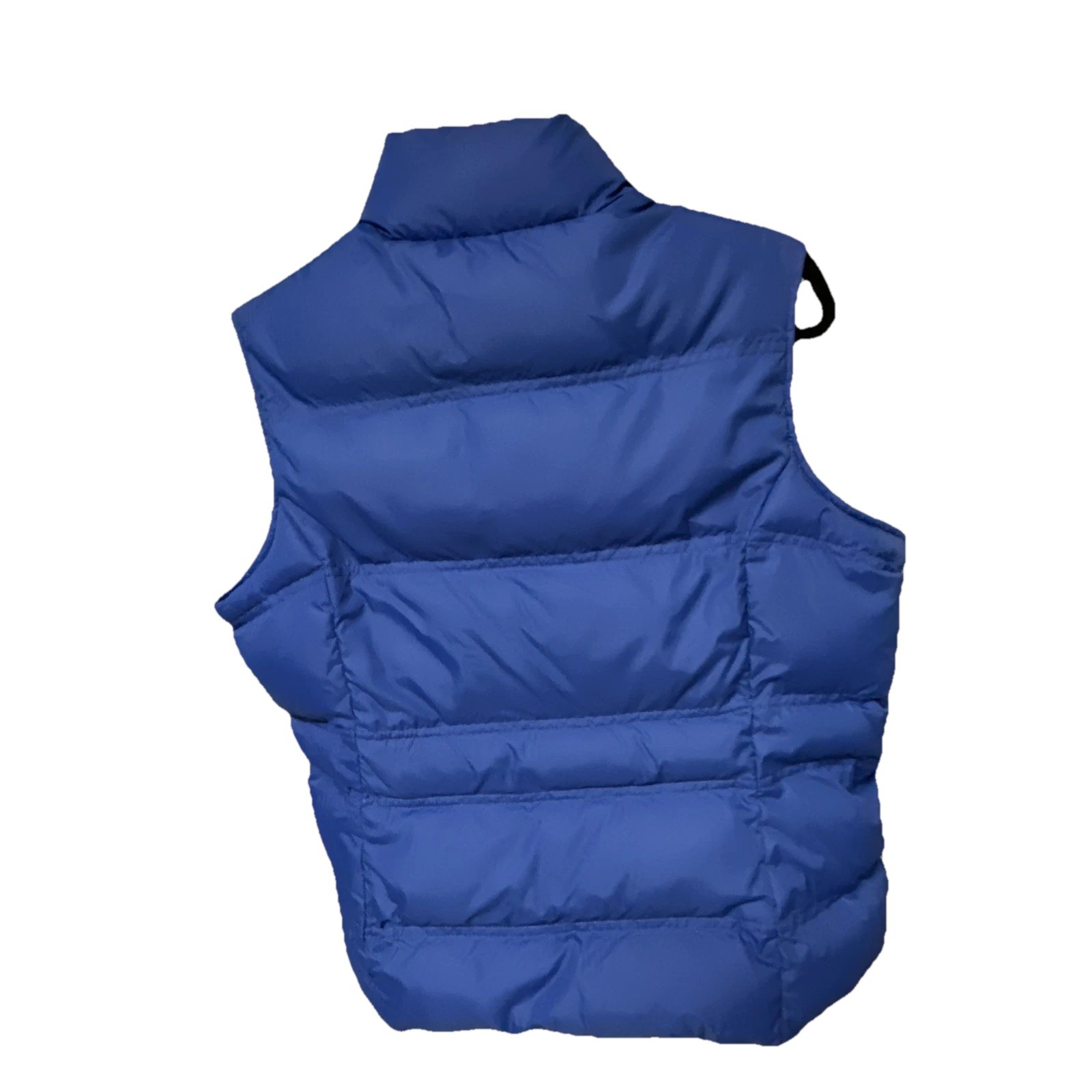 Lands' End Blue Puffer Vest Mock Neck Silver Buttons Down 80 , Boys Sz 10-12