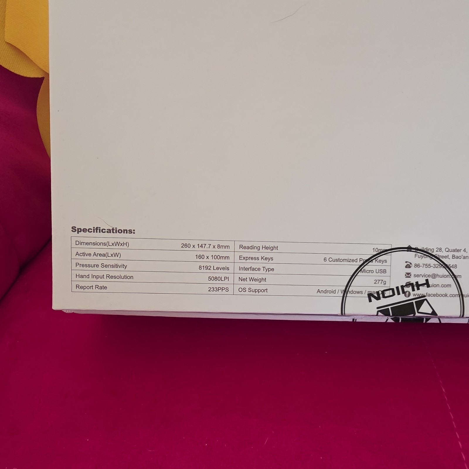 Huion Inspiroy H640P Graphics Tablet Battery-Free Pen Wired Micro USB