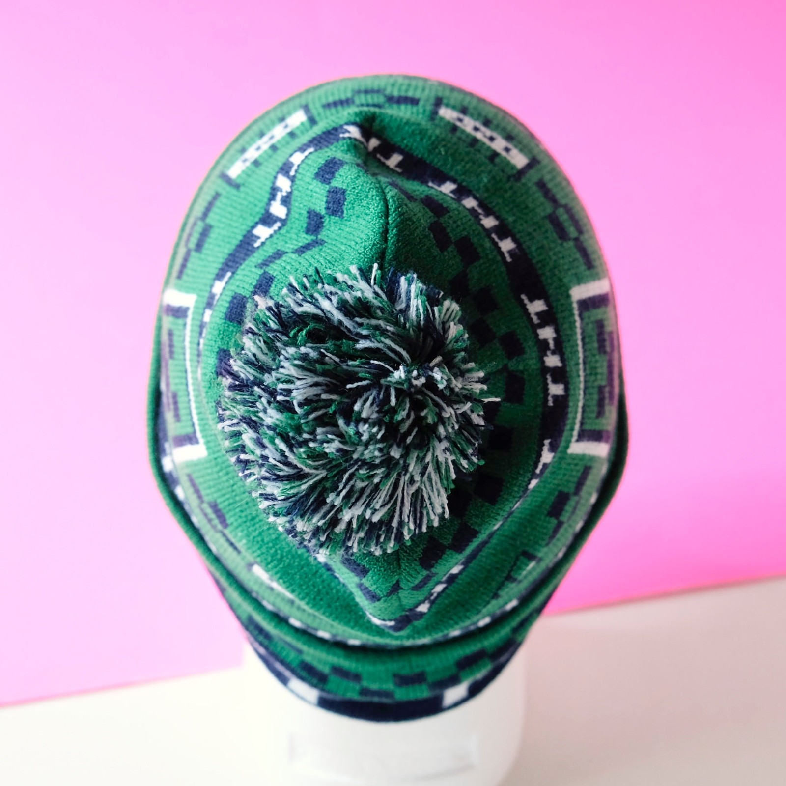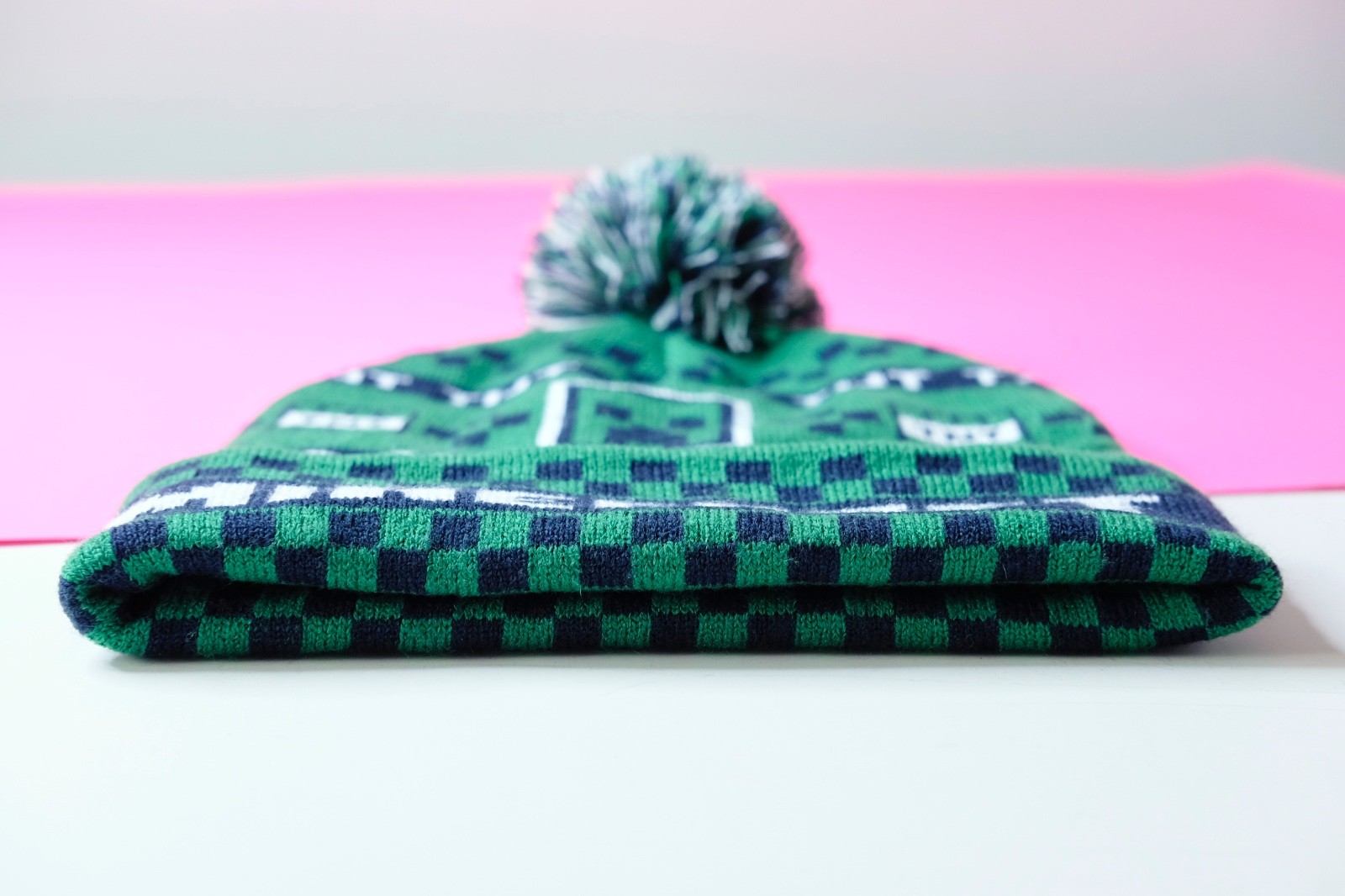 как выглядит Minecraft Creeper Beanie TNT Green Cuffed Checker Youth Winter Knit Hat with Pom фото