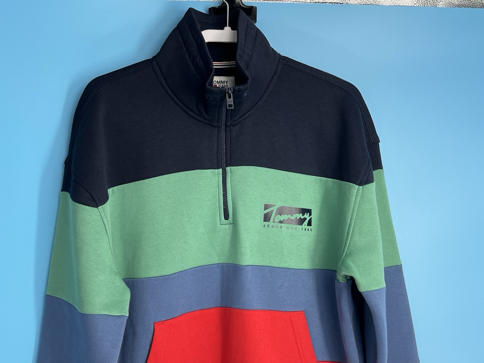 New Tommy Hilfiger 1/4 Zip Men's Retro Color Block Sweatshirt Size: M