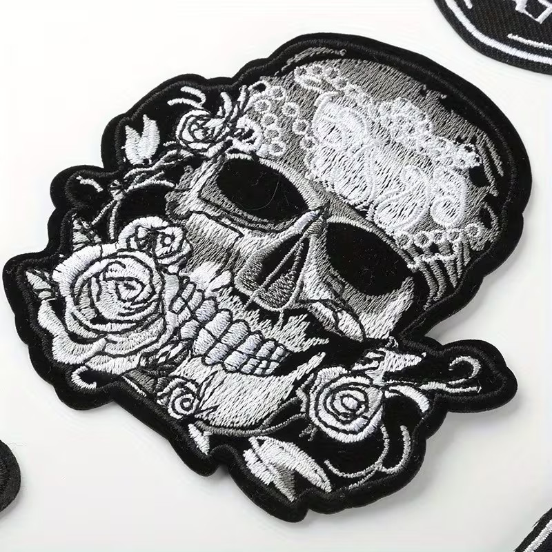 1pc Punk Style Skull embroidered iron on Patch 4 x 4 inch