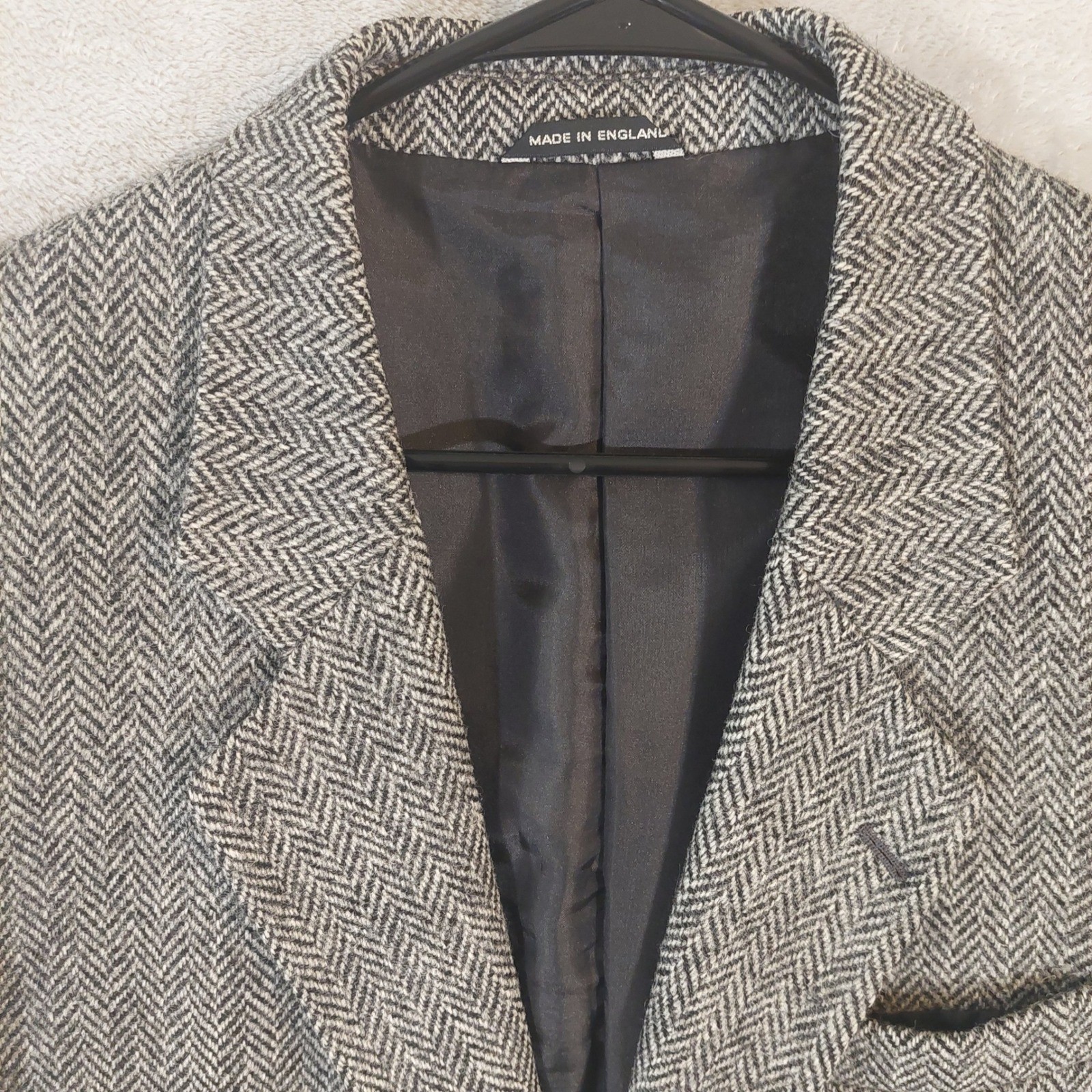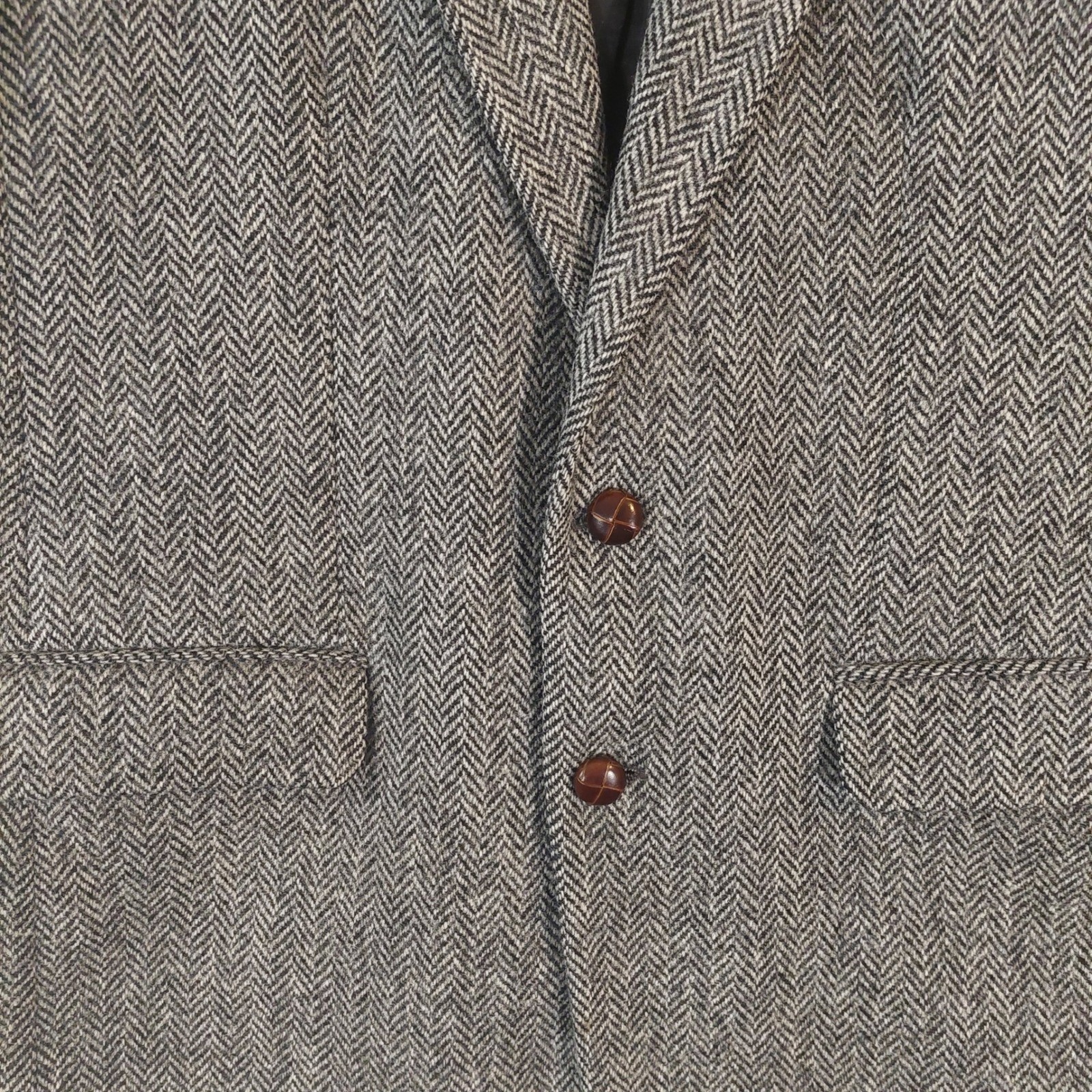 как выглядит VTG Harris Tweed Blazer Men40 Grey Herringbone Handwoven Wool Sport Coat England фото