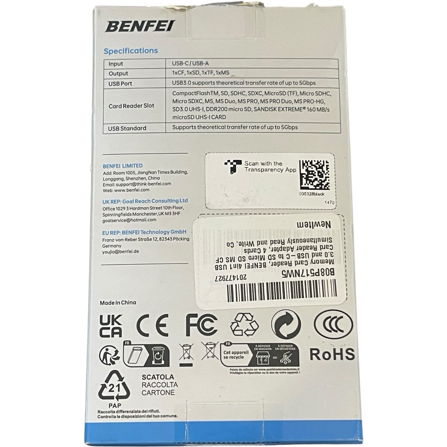 USB-C Card Reader BENFEI 4-in-1 USB 3.0 SD TF CF MS Adapter NIB