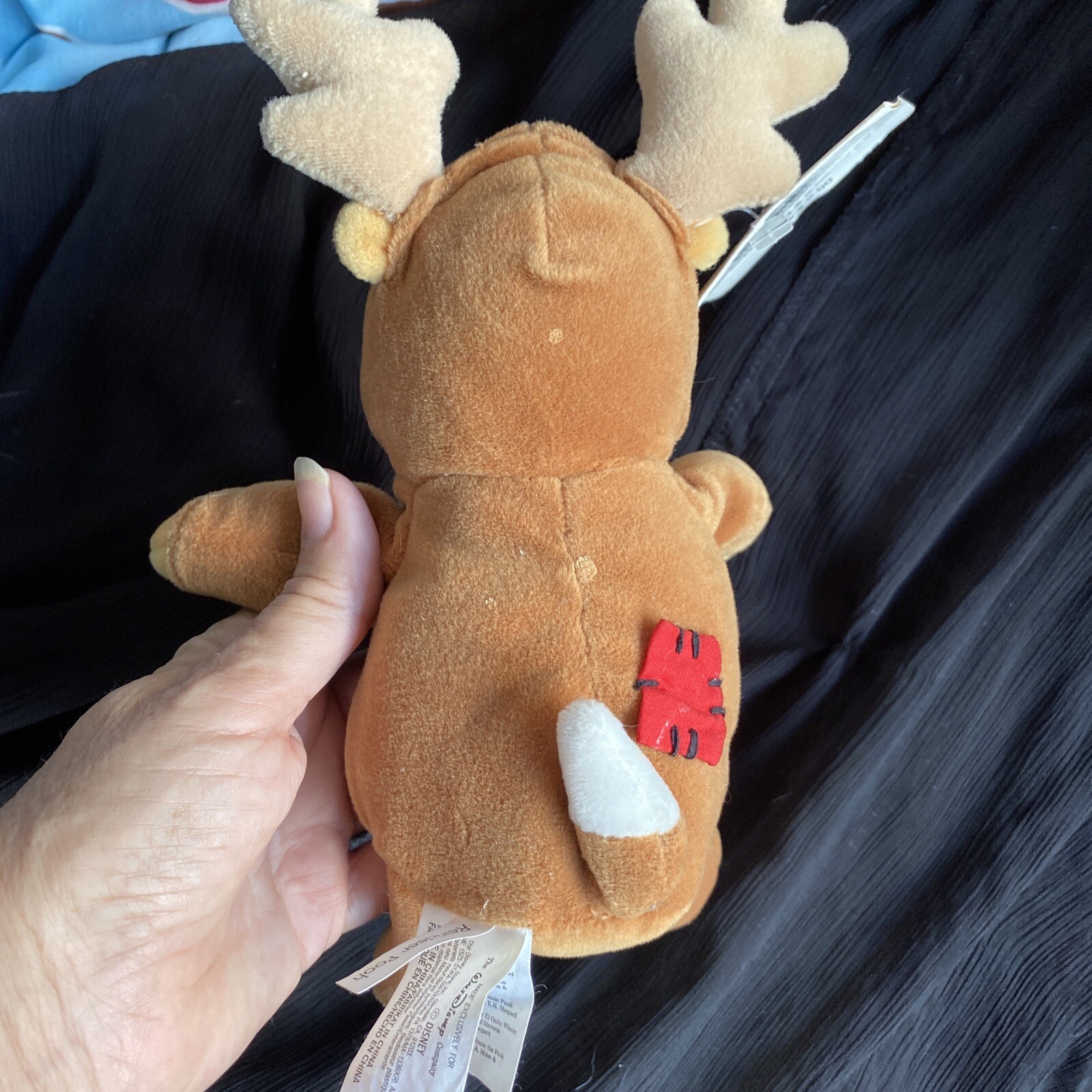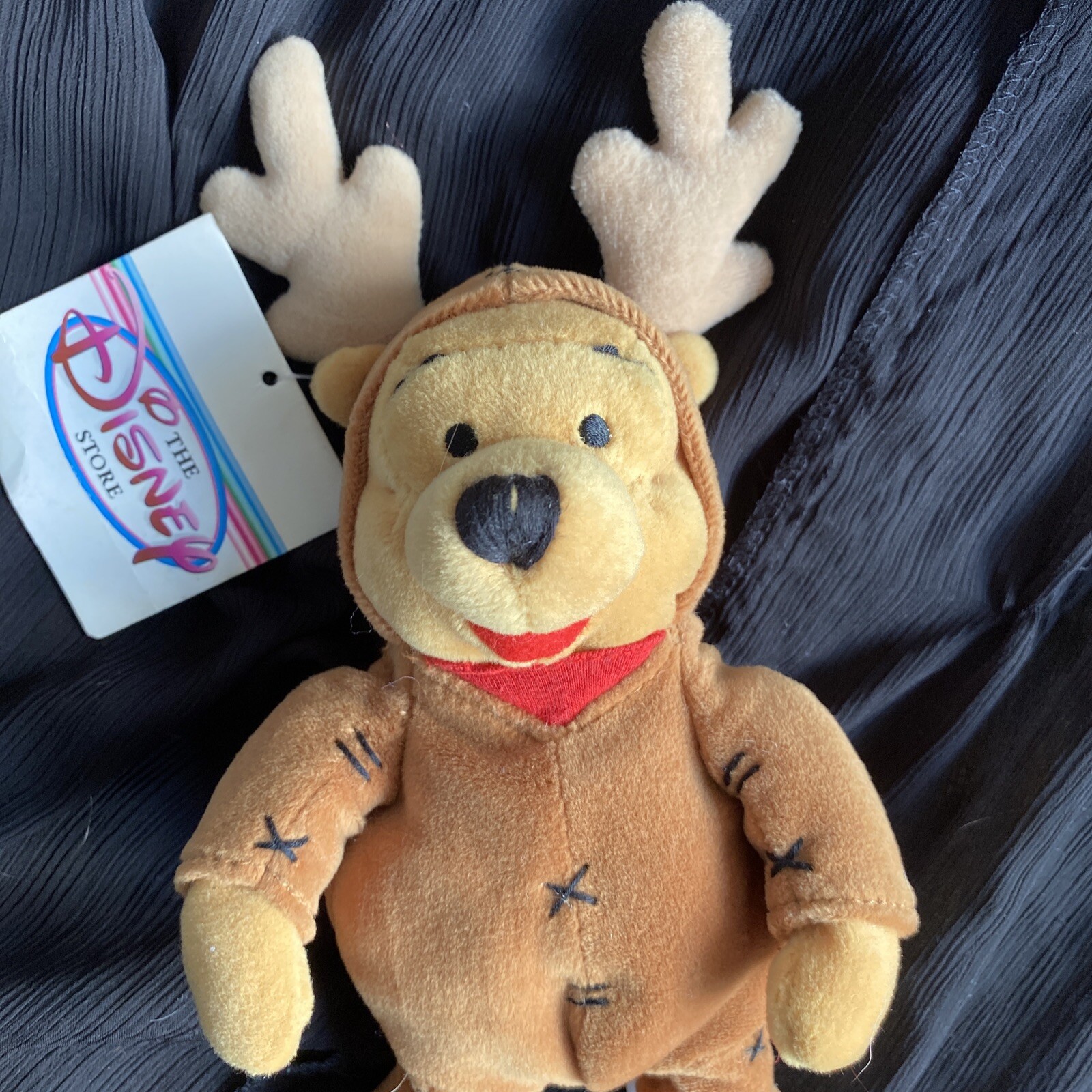 как выглядит Vtg Christmas Pooh Disney Store - Mini Bean Bag Reindeer Pooh W Tags фото