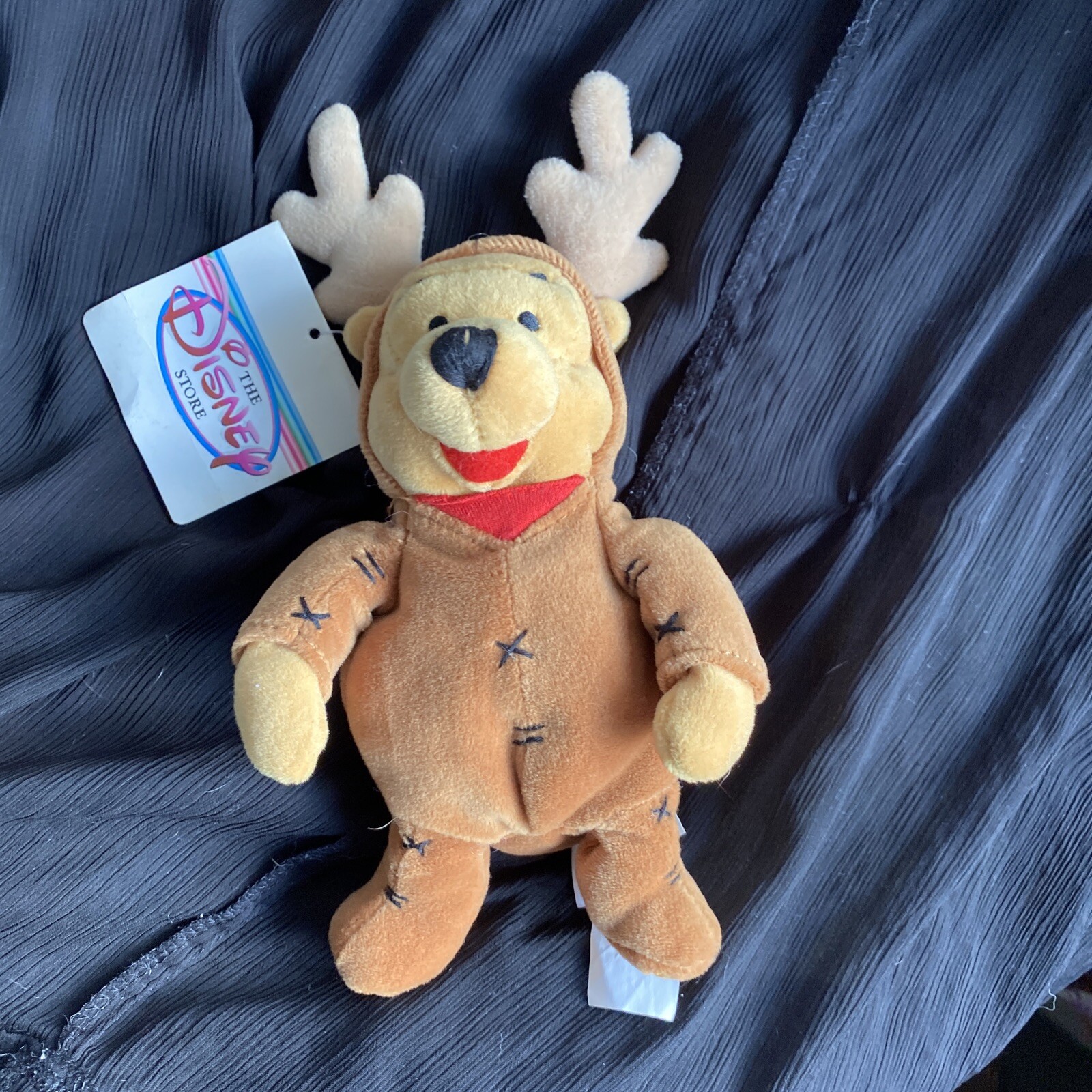 Vtg Christmas Pooh Disney Store - Mini Bean Bag Reindeer Pooh W Tags