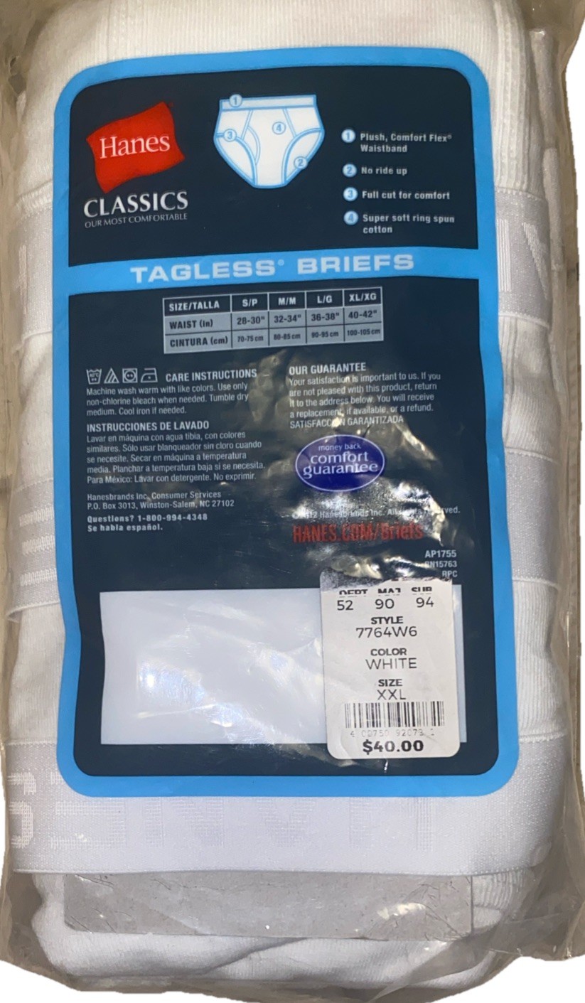 XXL-Hanes classics men s 6 pair 100 cotton white briefs new