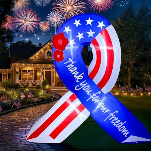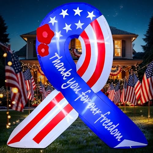 7FT 4th of July Inflatable American Flag, Independence Day 7FT Flag Ribbon