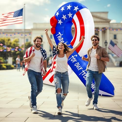 • 7FT 4th of July Inflatable American Flag, Independence Day 7FT Flag Ribbon
