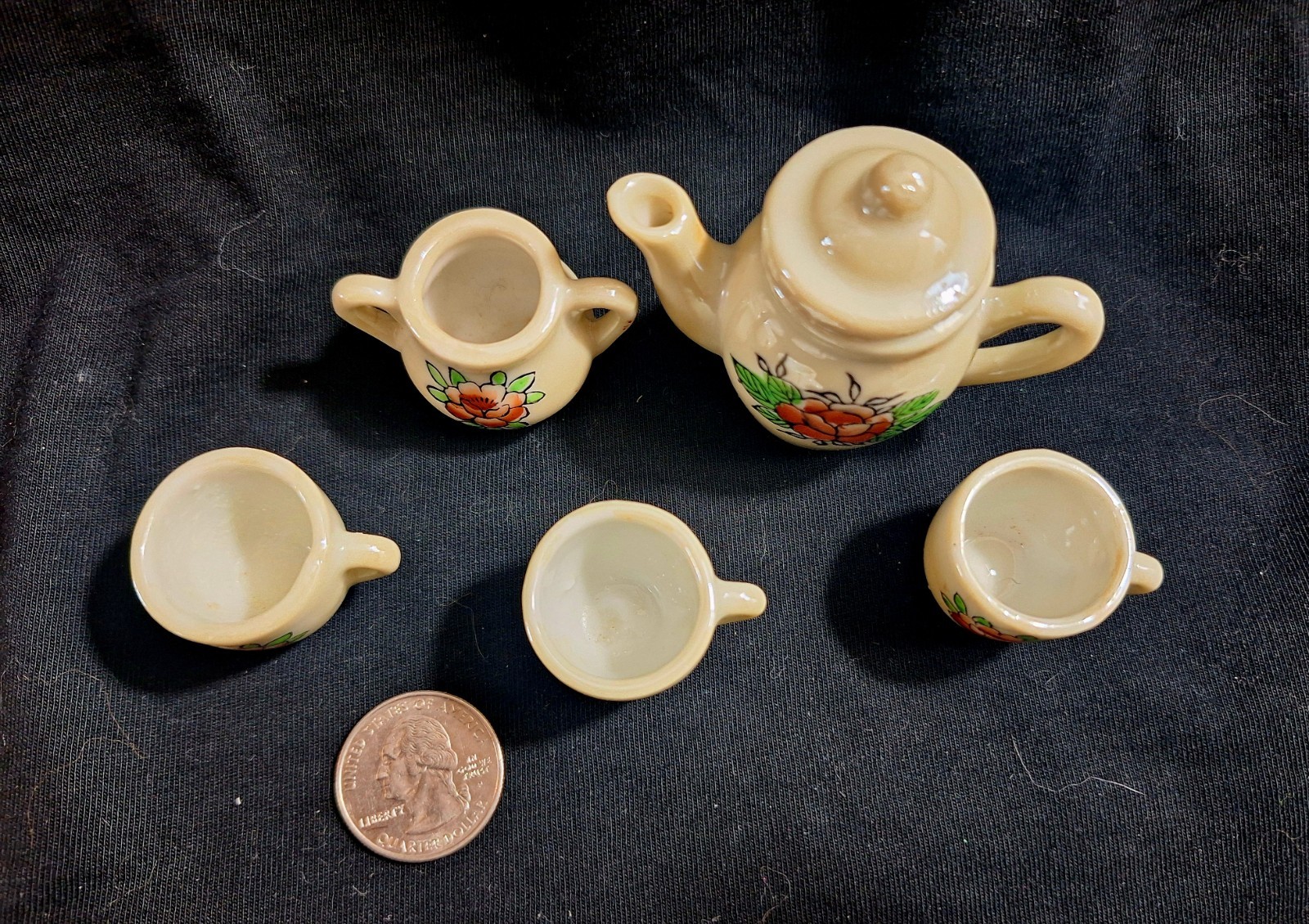 • Mini Porcelain Tea Set Floral Teapot Cups Decorative Trinket Display Vintage