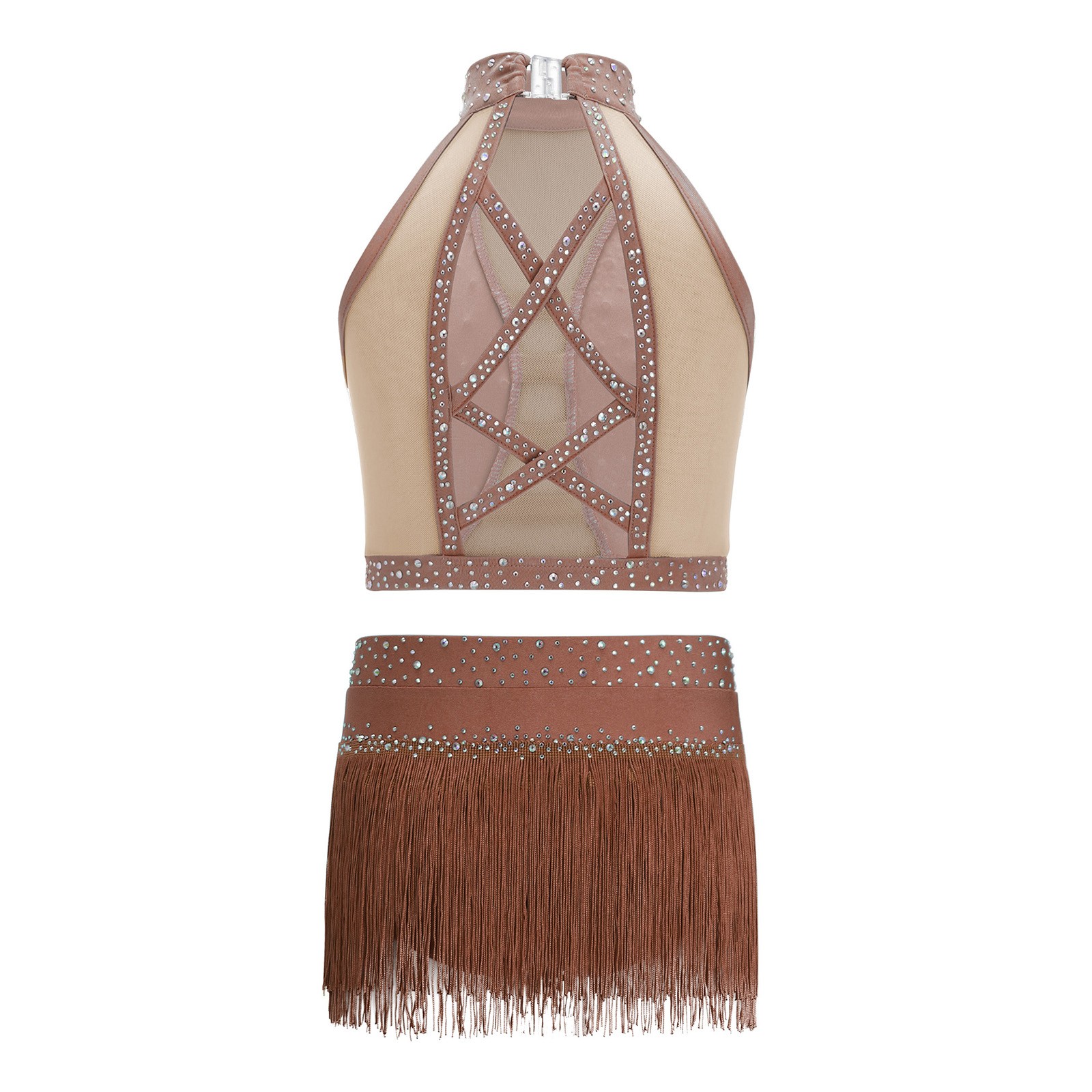 как выглядит Girls Latin Dance Gift Dance Outfits Kids Fringe Skirt Performance Tassel Trim фото