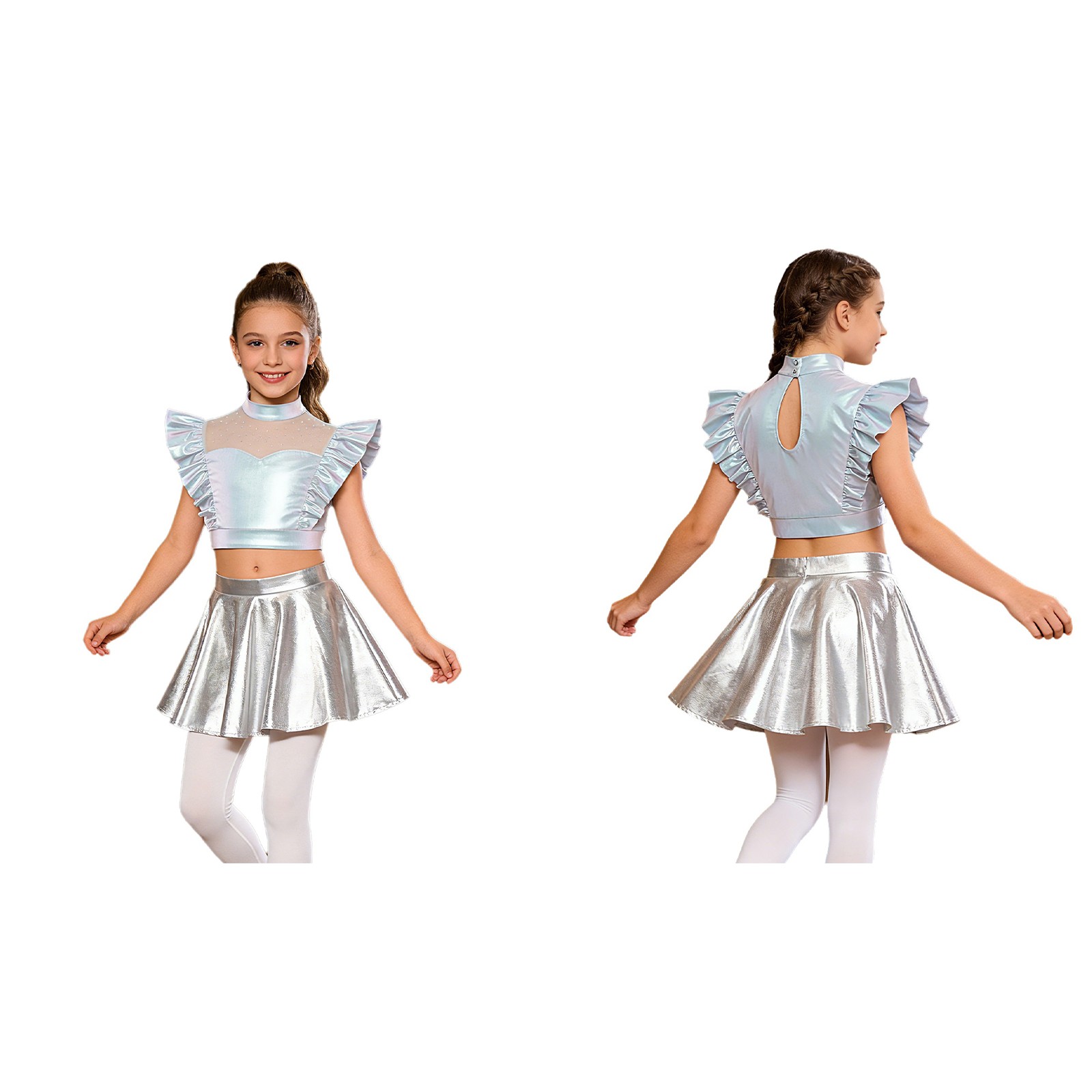 как выглядит Girls Dance Outfits Kids Dancewear Stage Dress Celebration Costume Skirt Jazz фото