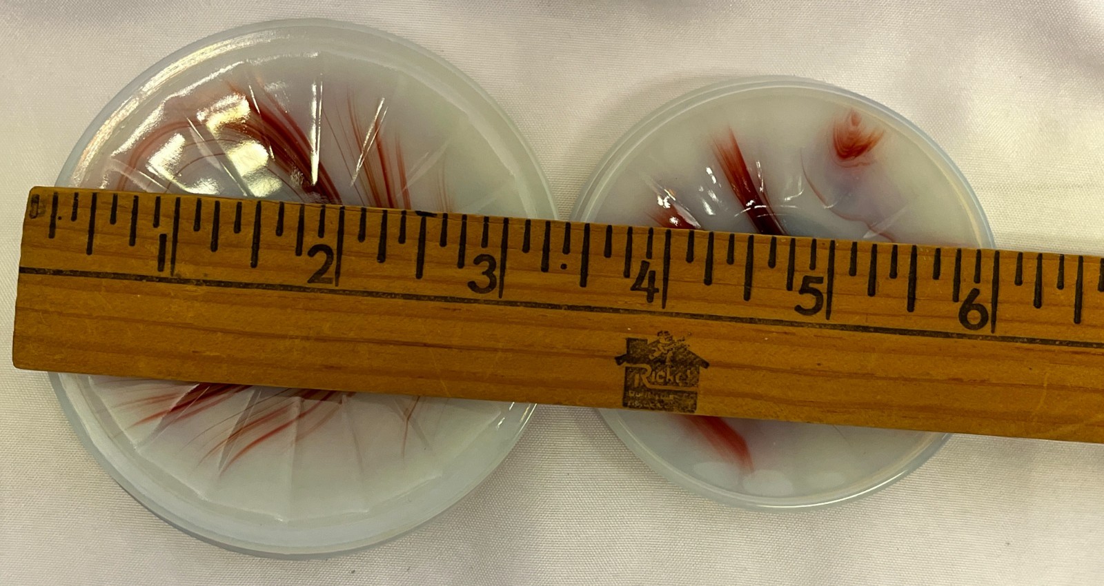 как выглядит Vintage Akro Agate 7 Pc. Small Oxblood White Childs Tea Set Incomplete, Nice фото